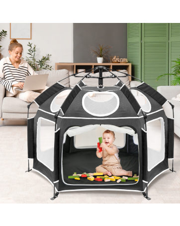 【Multi-Objective, Indoors & Outdoor】Child play tent can be utilized as a playpen, play yard, fenced area, child seashore tent, journey cot, mosquito internet, and extra, appropriate for infants, toddlers, infants, youngsters…, moreover, it could actually additionally function a pet enclosure to your pet associates to play.