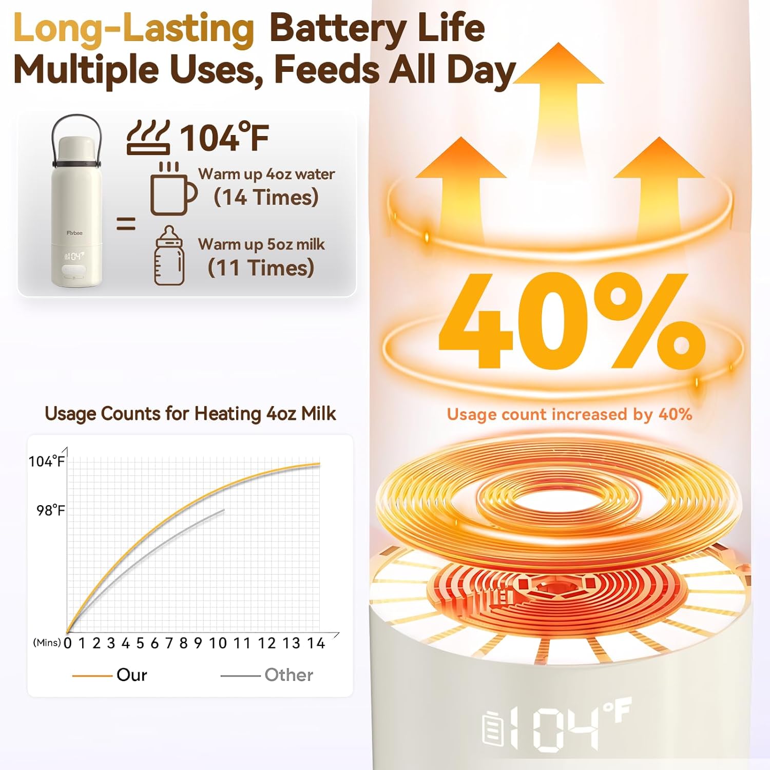 【Lengthy-Lasting Battery】This bottle hotter on the go encompasses a highly effective 12,000mAh battery that costs to 80% in only one hour, heats up 5 oz of milk 11 occasions on a full cost, and maintains heat for as much as 35 hours when totally charged, making it a dependable selection for on-the-go mother and father (Notice: The DC 11.1V/4000mAh within the consumer handbook refers to 3 3.7V 4000mAh cells, which is 12000mAh)