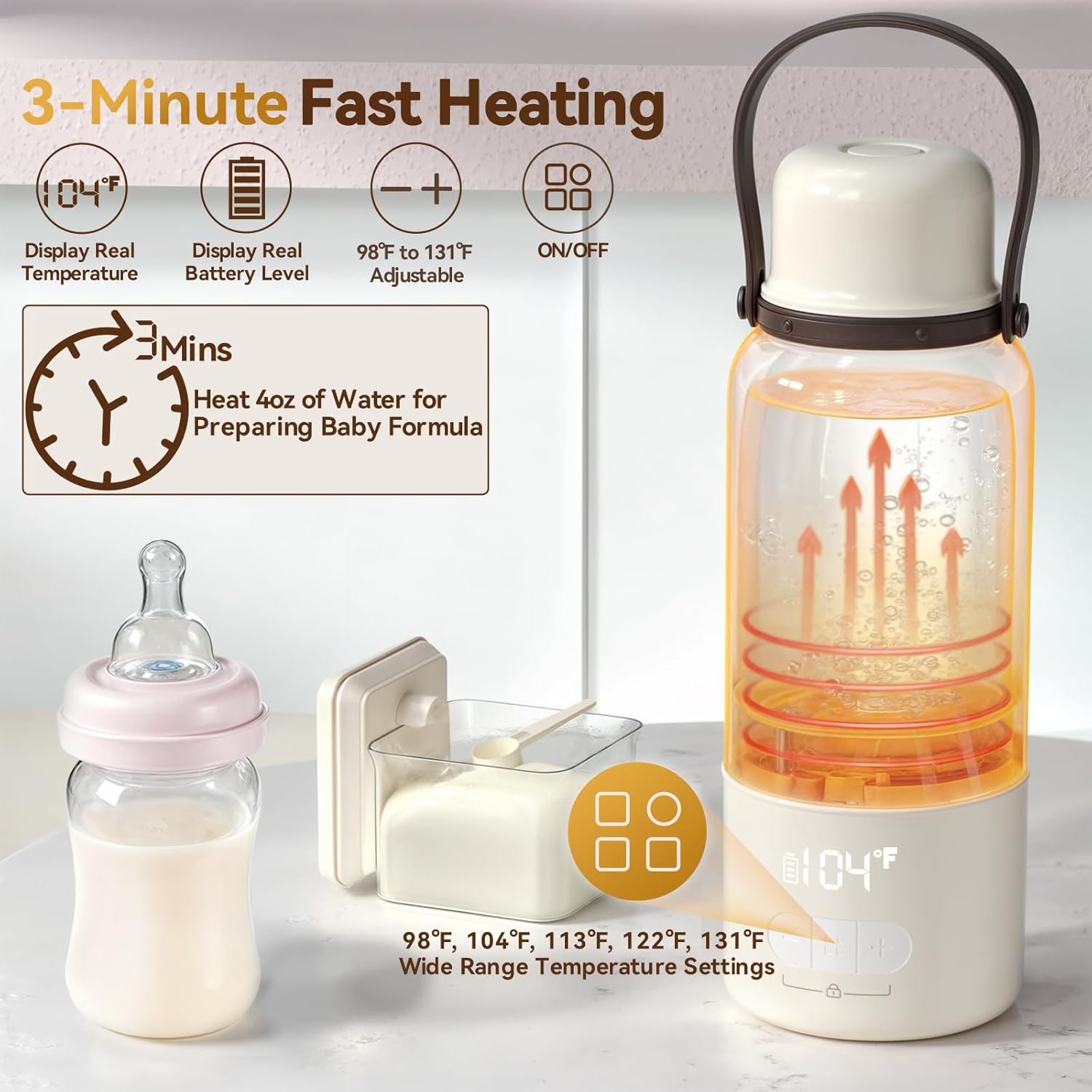 【Twin Temperature Mannequin Setting】This journey bottle hotter may be exactly adjusted from 98°F to 131°F inside ±1°F, supporting 5 wide selection particular temperature settings: 98°F, 104°F, 113°F, 122°F, and 131°F. It may possibly heat milk or water for system and in addition warmth espresso, tea, and scorching chocolate for out of doors actions
