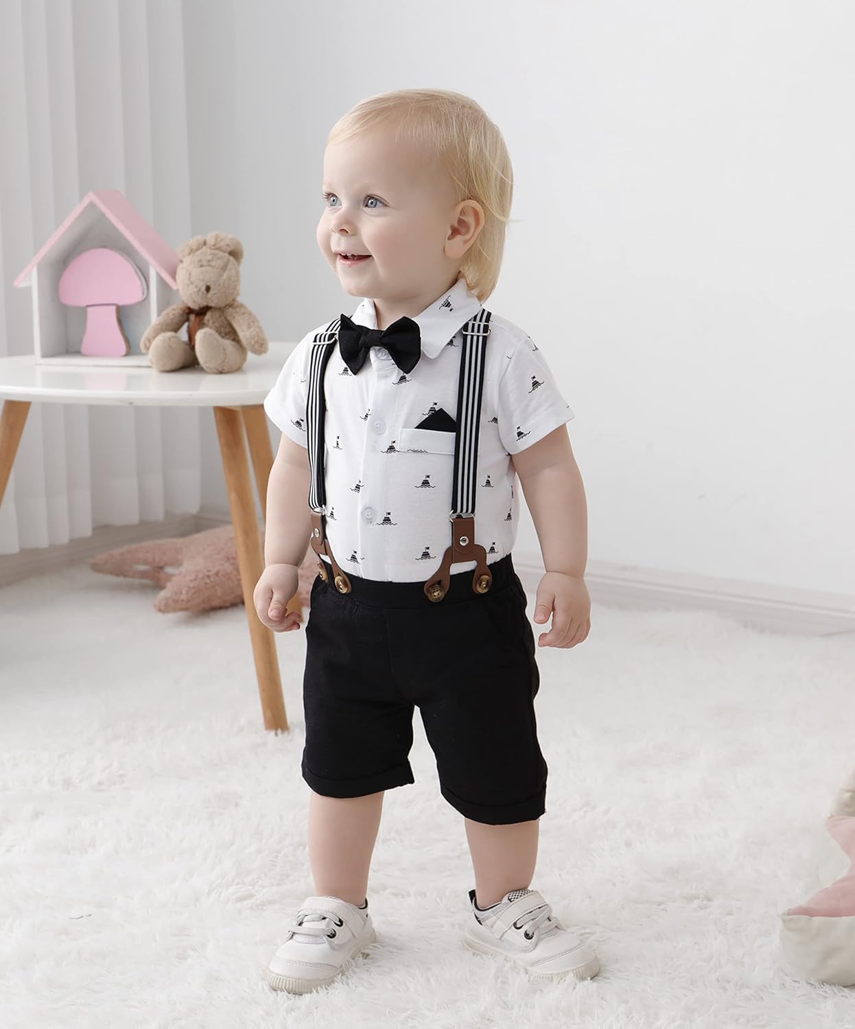 Nice Materials: New child child boy gentleman garments outfits is product of high-quality cotton cloth, which is tremendous gentle, light-weight and breathable, higher safety to child’s pores and skin. Package deal: 1 * shirt, 1 * pant, 1 * bowtie,1 * suspender. Extra handy: The toddler boy garments quick sleeve romper shirt has buttons within the crotch, snap on closure, handy for put on and diaper altering. Design: The newborn boy summer time garments bib pants are designed with elastic waistband and removable buttons, it permits the newborn to have extra totally different carrying types. The adjustable sling can provide the newborn the perfect consolation. Varied Events: This cute summer time child boy outfits just isn’t solely appropriate for particular events corresponding to baptism, wedding ceremony, church, christening, photo-shooting, cocktail celebration or party, but in addition very appropriate for each day events. Beneficial Age: Appropriate for new child boy garments 0-3 months, toddler child boy garments 3-6 months, child boy outfits 6-9 months, child garments boy 9-12 months, child boy for fits 12-18 months, 18-24 months toddler child boy swimsuit. NOTE: Each little one has his personal physique form. Please comply with the dimensions data to decide on an acceptable dimension.