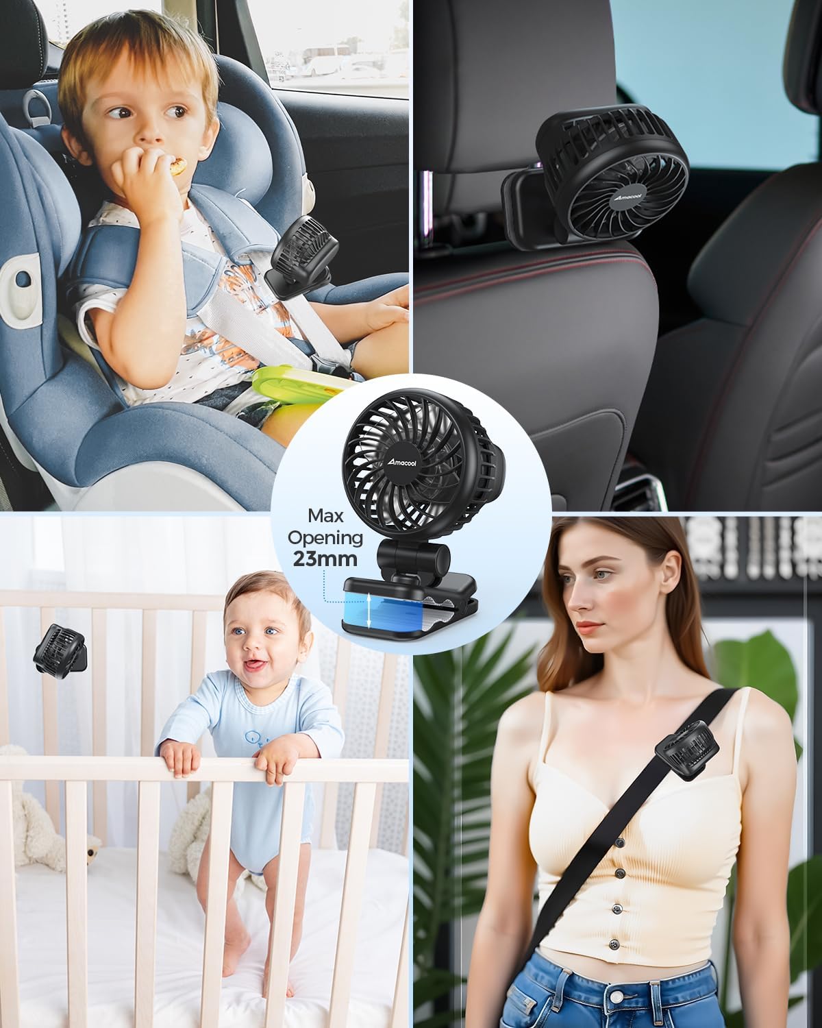 【3 Speeds & 360° Adjustable】- Don’t let its compact measurement idiot you! This child fan packs sturdy airflow with a max wind velocity of 15.09 ft/s——extra highly effective than same-sized clip on followers and operates quietly. The adjustable head can rotate 360° horizontally and tilt 180° vertically for vast protection and customized cooling
