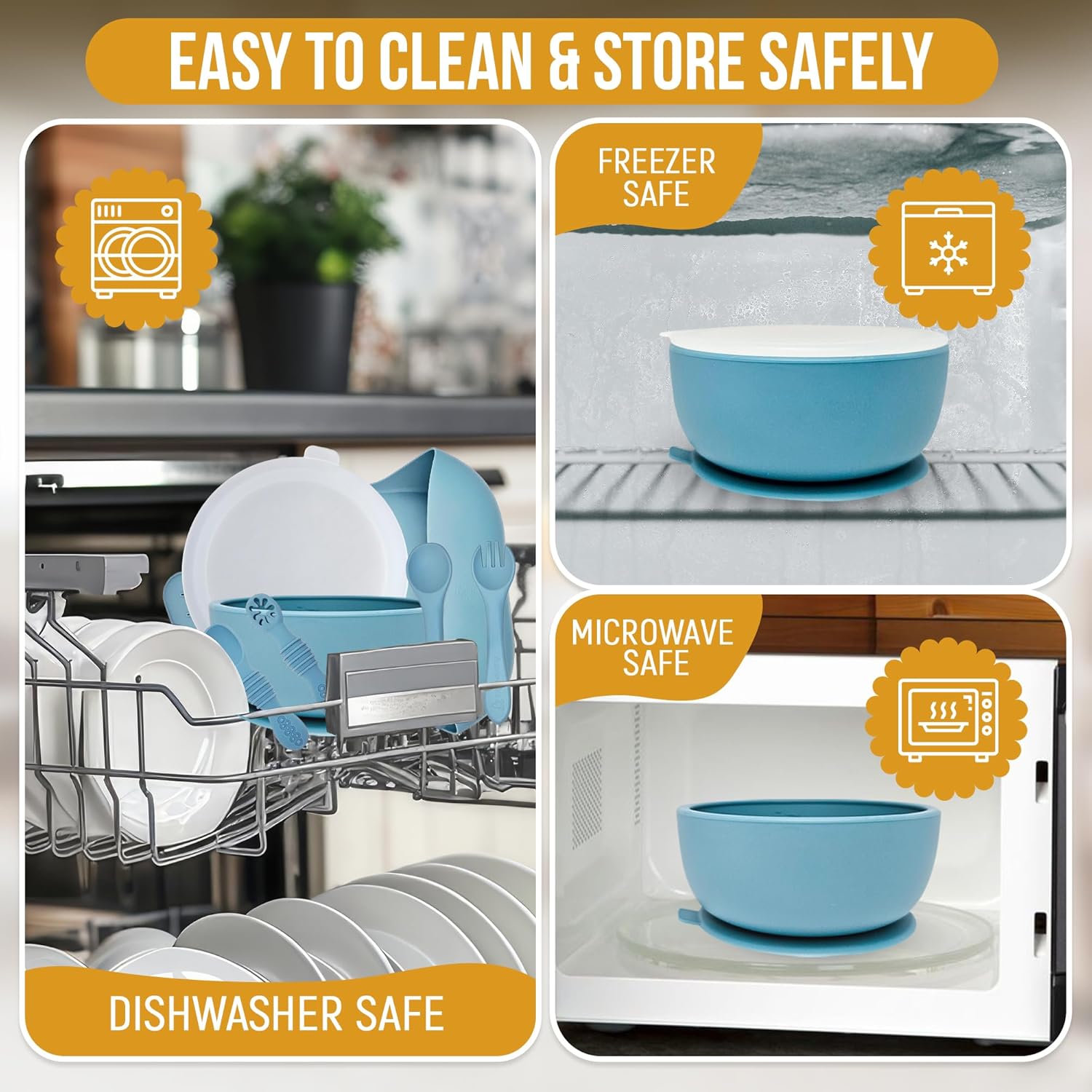 SAFE FOR YOUR BABY – Constructed from 100% food-grade silicone, these toddler plates and toddler utensils are free from BPA, PVC, and different dangerous substances. They’re unbreakable and 100% protected to be used in microwaves, dishwashers, and freezers and simple to scrub. The infant weaning suction bowls with lids won’t ever crack, soften or unfastened their form within the dishwasher or microwave!