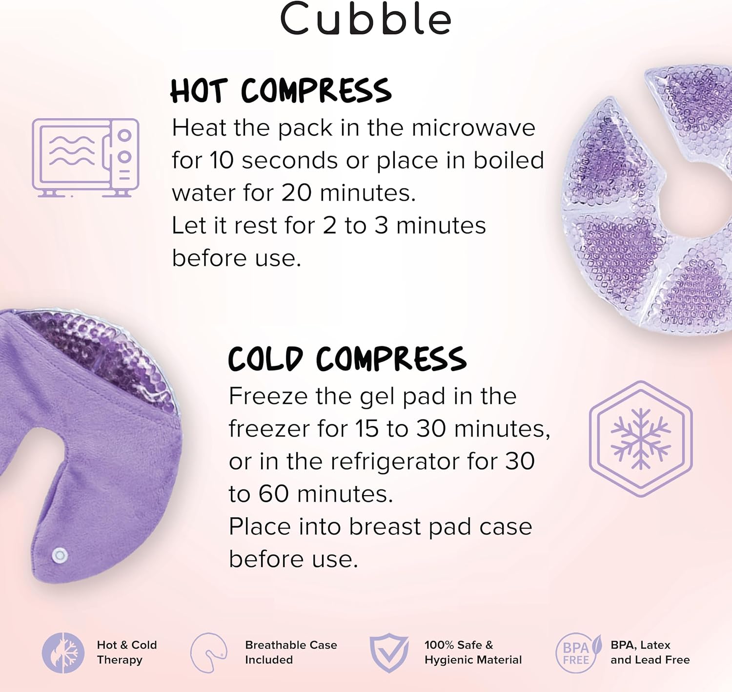 Twin Aid: Cubble Scorching & Chilly Breast Pads supply versatile ache aid choices for tender and overworked breastfeeding breasts, serving to you handle discomfort effectively. Full of premium gel beads, the breast pads present efficient and long-lasting aid.