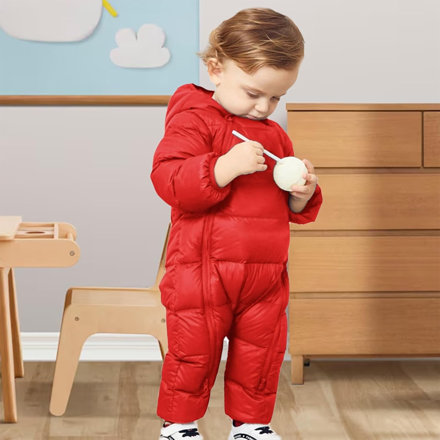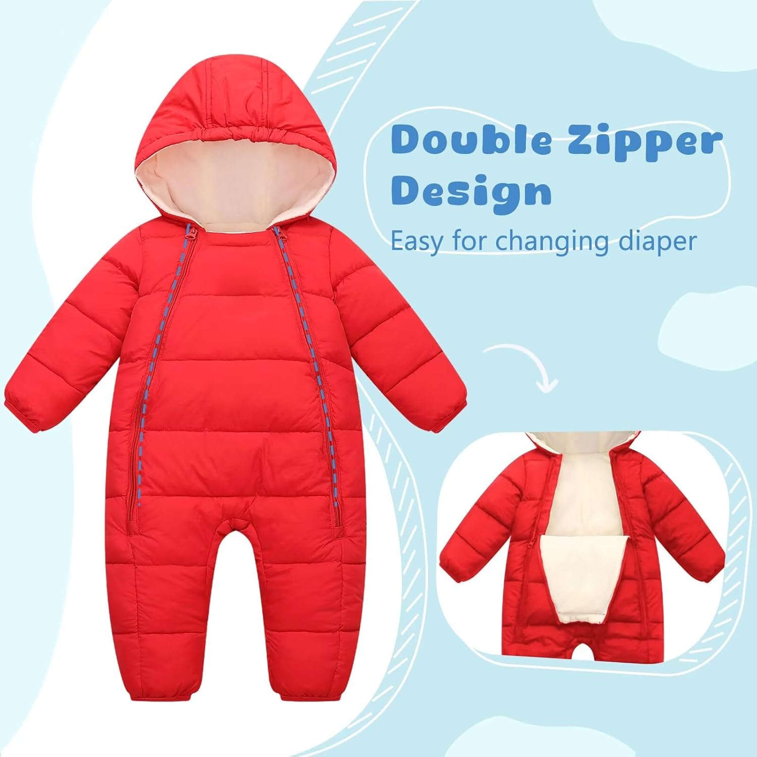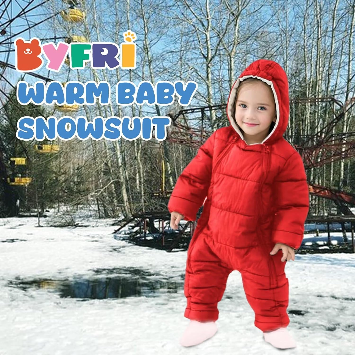 BYFRI Toddler Snowsuit Infant Winter Jumpsuit Hooded Snow Outfit 12-18 Months Unisex Baby Footed Coat Bodysuit Outerwear