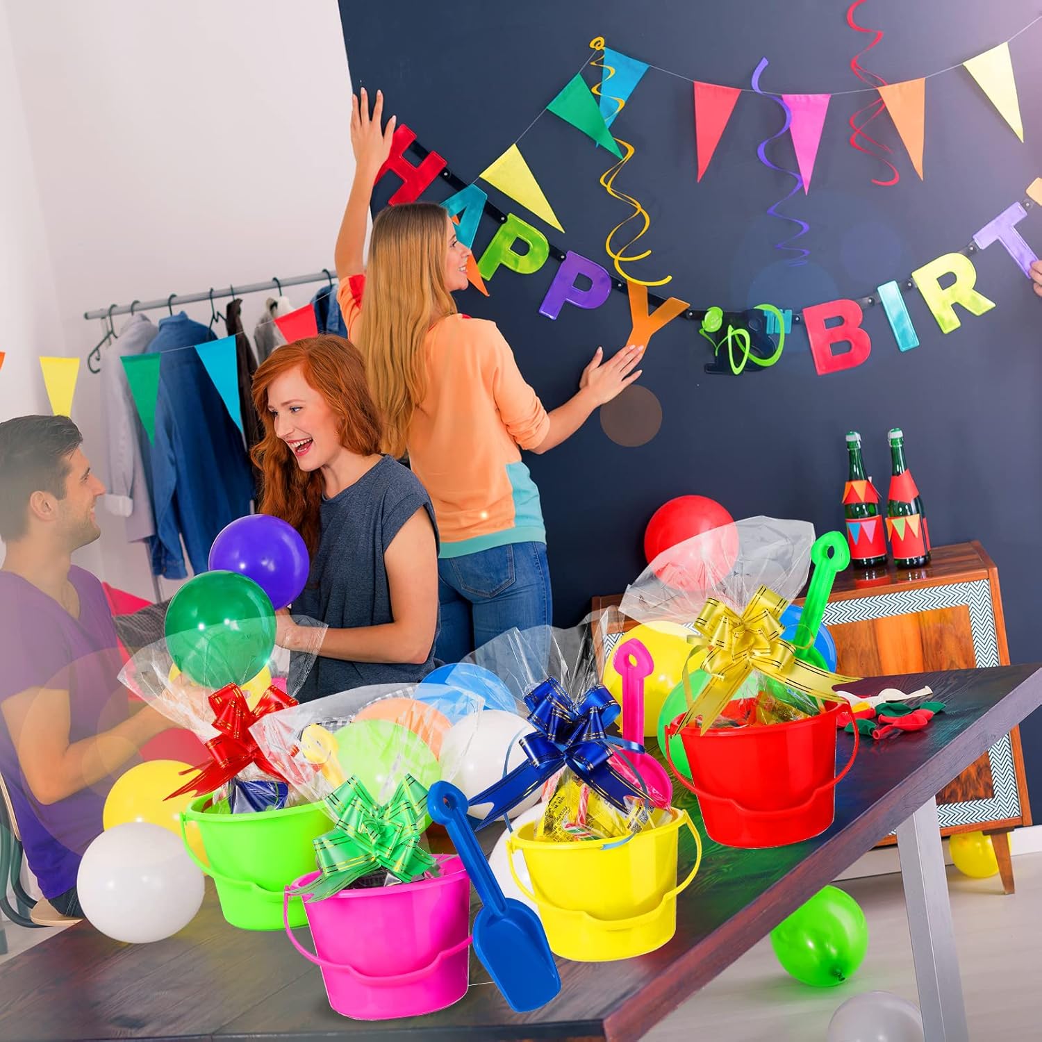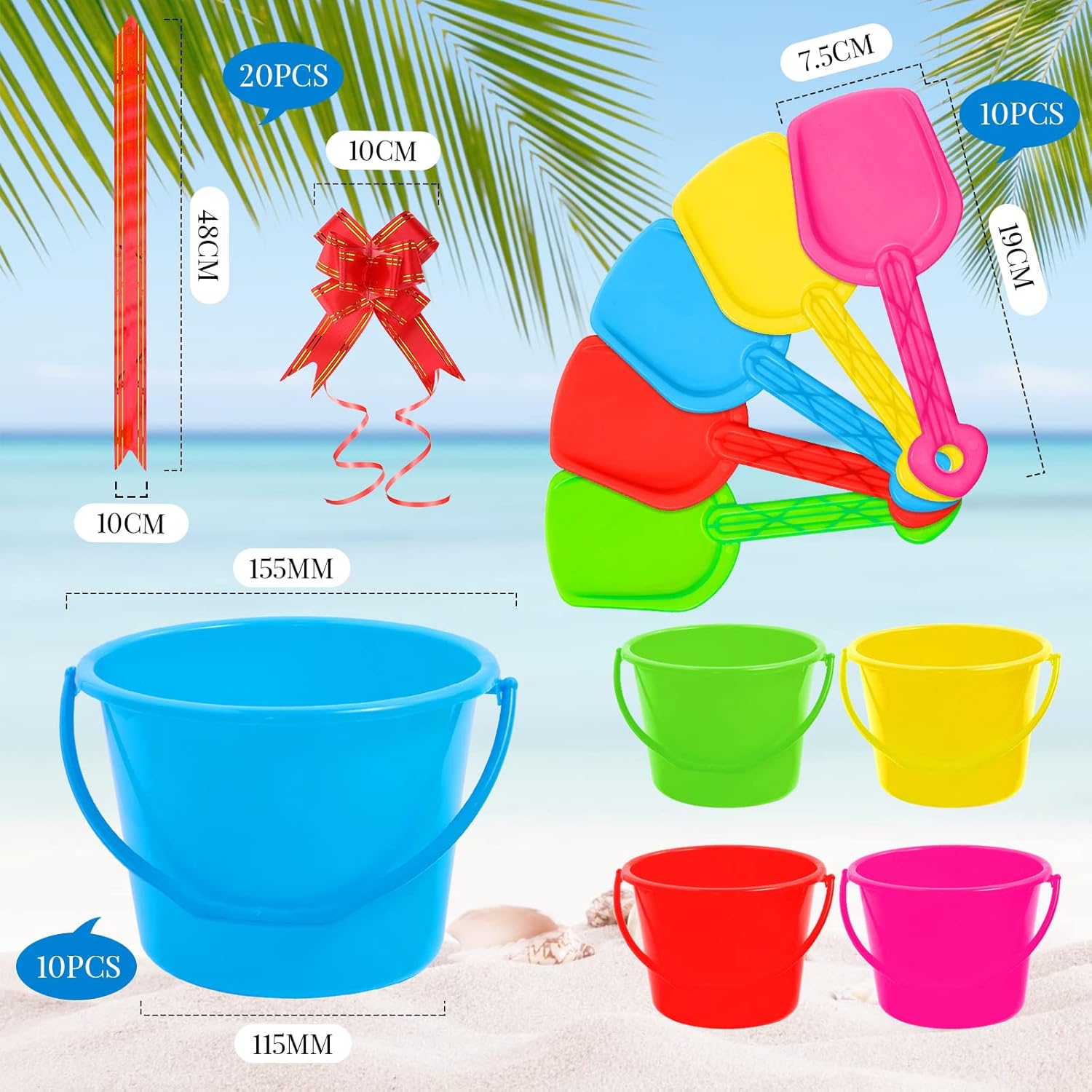 Good Mixture: you’ll get 10 items of seashore buckets and 10 items of seashore shovels, they arrive in 5 totally different colours, together with inexperienced, yellow, crimson, rose, blue; As well as, the bundle is supplied with 20 items of clear luggage and 20 items of colourful pull bows; Sufficient amount can meet your numerous reward packaging and occasion wants