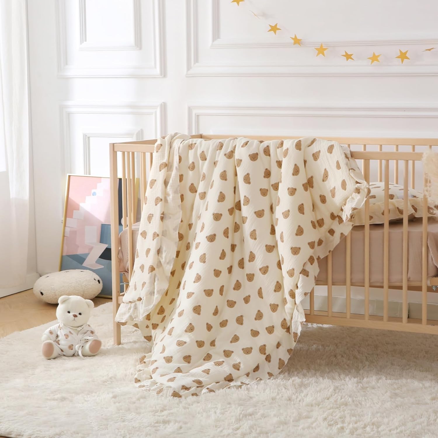 PEFECT CRIB COMFORTER: CLoucl crib comforter is made from premium double-layer 100% muslin cotton, light-weight and breathable, skin-friendly and comfortable, in order that your child can take pleasure in a cloud-like sleeping expertise. Common for all seasons, so your baby can have candy desires in any season. Distinctive printing design, easy and childlike, appropriate for each ladies and boys.