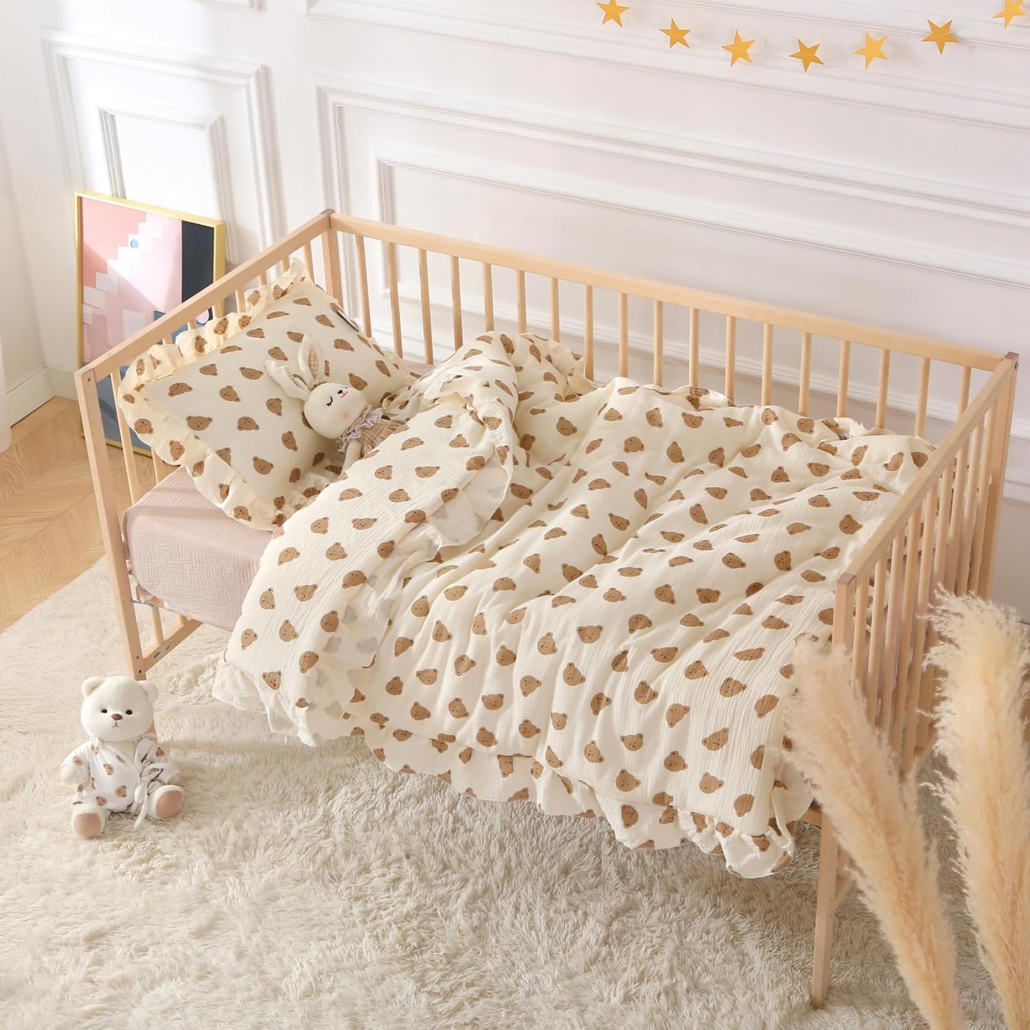QUALITY FABRIC AND FILLING: The outer cloth is double-layer cotton muslin cloth, which isn’t solely tremendous comfortable, breathable, skin-friendly, light-weight and really pleasant to child’s delicate pores and skin. And sturdiness, not straightforward to fade, not pilling, with the expansion of the usage of time, however extra comfortable and comfy. The crib comforter is stuffed with a down different containing 20% soy fiber, the right weight to maintain child comfy all yr spherical!