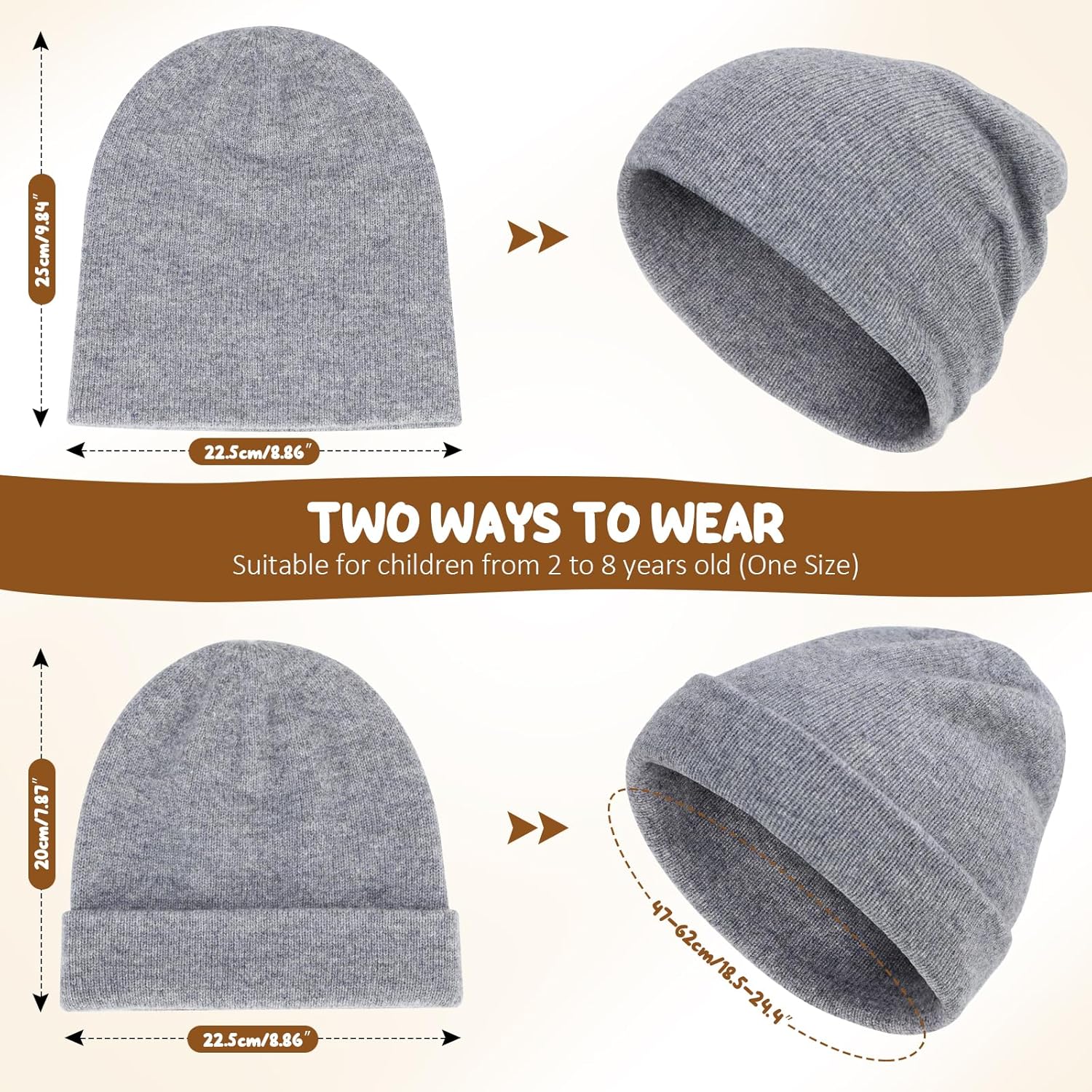 100% Merino Wool Beanie for Kids 2-8, Double Layer Knit Beanie Boys Girls Winter Hats Ski Toque