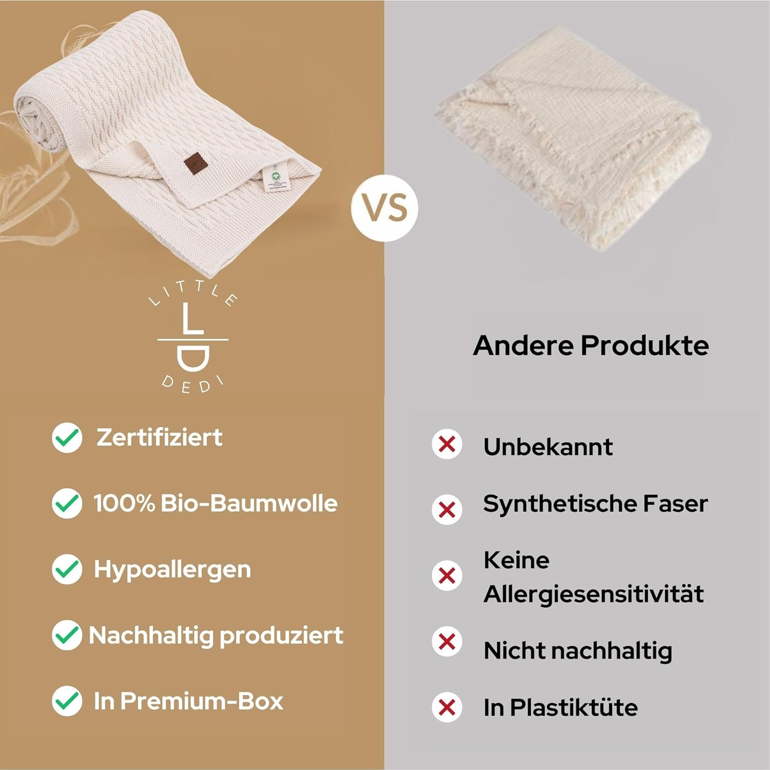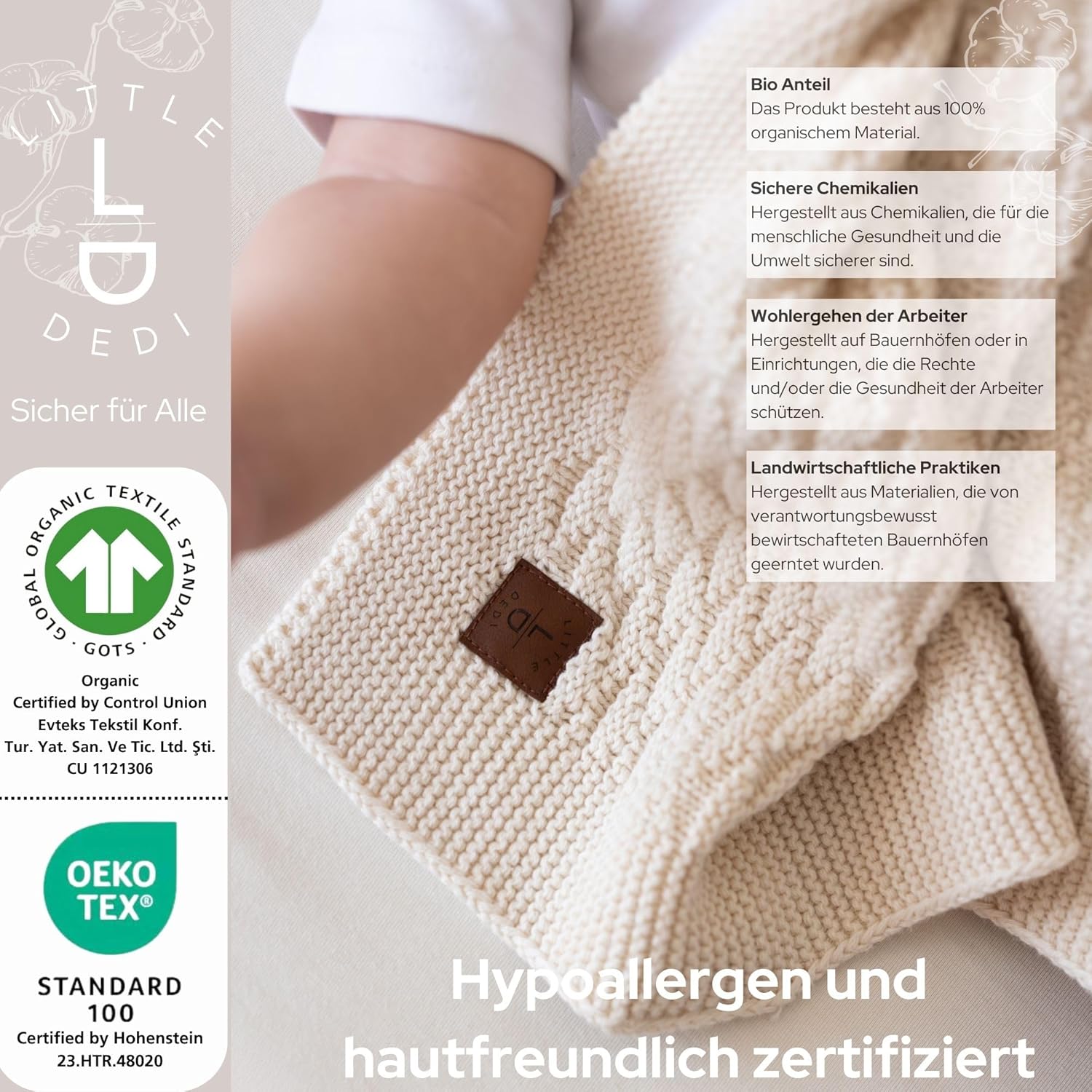 Wrap your child in unmatched consolation and heat with our 100% Natural Cotton Knitted Child Blanket. Lovingly crafted from GOTS-certified natural cotton, this breathable and hypoallergenic blanket ensures your child’s delicate pores and skin stays protected and comfy. Designed with a timeless cable knit sample, it’s not only a sensible nursery merchandise but additionally a trendy addition to your private home. Whether or not you are at dwelling or on the go, this versatile blanket is ideal for preserving your infant cosy within the crib, stroller, automobile seat, or throughout tummy time. This blanket is thoughtfully sized at 30″x40″, making it excellent for newborns and toddlers alike. Its impartial and stylish colour palette ensures it enhances any nursery theme, whereas being appropriate for each girls and boys. With a deal with eco-friendliness and sustainability, it’s crafted from natural supplies and designed to final, making it a product you possibly can be ok with utilizing on daily basis. Whether or not you are swaddling a new child, preserving your toddler heat on a cold stroll, or gifting it to new dad and mom, this blanket is as versatile as it’s luxurious. It’s light-weight but heat, making it appropriate for all seasons. Plus, its sturdy building ensures it withstands frequent washes with out dropping its softness or form. Packaged in a premium, reusable reward field, it’s good for child showers, holidays, or as a considerate current for anticipating dad and mom. Elevate your nursery necessities with this timeless, eco-friendly blanket that mixes consolation, practicality, and elegance. It’s greater than only a blanket; it’s a cherished piece that folks will treasure for years to come back.