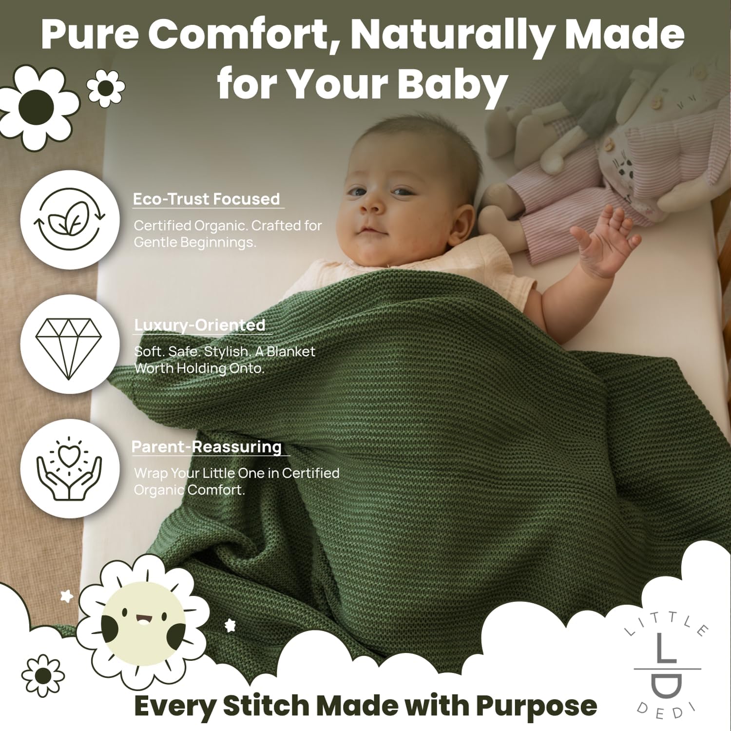 Wrap your child in unmatched consolation and heat with our 100% Natural Cotton Knitted Child Blanket. Lovingly crafted from GOTS-certified natural cotton, this breathable and hypoallergenic blanket ensures your child’s delicate pores and skin stays secure and comfortable. Designed with a timeless cable knit sample, it’s not only a sensible nursery merchandise but in addition a trendy addition to your property. Whether or not you are at dwelling or on the go, this versatile blanket is ideal for retaining your baby cosy within the crib, stroller, automobile seat, or throughout tummy time. This blanket is thoughtfully sized at 30″x40″, making it ideally suited for newborns and toddlers alike. Its impartial and stylish shade palette ensures it enhances any nursery theme, whereas being appropriate for each girls and boys. With a concentrate on eco-friendliness and sustainability, it’s crafted from natural supplies and designed to final, making it a product you possibly can be ok with utilizing every single day. Whether or not you are swaddling a new child, retaining your toddler heat on a cold stroll, or gifting it to new dad and mom, this blanket is as versatile as it’s luxurious. It’s light-weight but heat, making it appropriate for all seasons. Plus, its sturdy development ensures it withstands frequent washes with out dropping its softness or form. Packaged in a premium, reusable reward field, it’s good for child showers, holidays, or as a considerate current for anticipating dad and mom. Elevate your nursery necessities with this timeless, eco-friendly blanket that mixes consolation, practicality, and magnificence. It’s greater than only a blanket; it’s a cherished piece that oldsters will treasure for years to return.