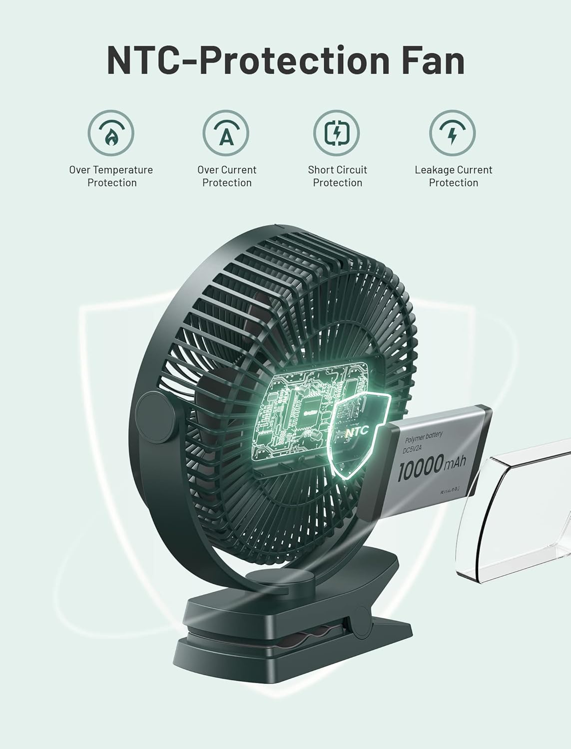 【10000 mAh Battery with NTC Safety】:With a chargeable 10,000 mAh battery (BUILT-IN), it will possibly final for 4-40 hours after being totally charged; with NTC (Unfavourable Temperature Coefficient) safety, you need to use it safely with none fear, as most followers usually are not geared up with it; apart from, the latest polymer battery has overcharge, over-discharge, over-temperature safety, and short-circuit safety features; moreover, it helps use throughout charging