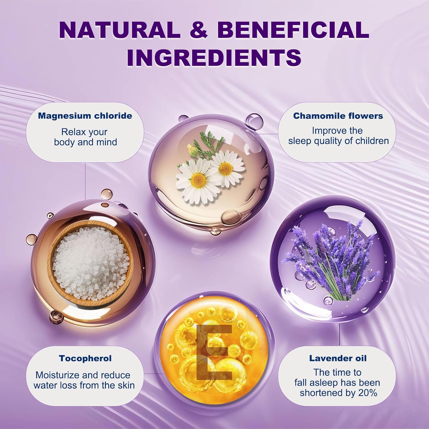 Soothe and Calm,Fall Asleep Shortly: We use a secure magnesium content material to advertise physique leisure and enhance the irritability of youngsters’s limbs at evening attributable to rising pains. We additionally add lavender to cut back kids’s excitability. Underneath the scent of lavender, the time it takes for youngsters to go to sleep will be shortened by 20%, As a father or mother, you now not want to fret about your kid’s issue falling asleep.