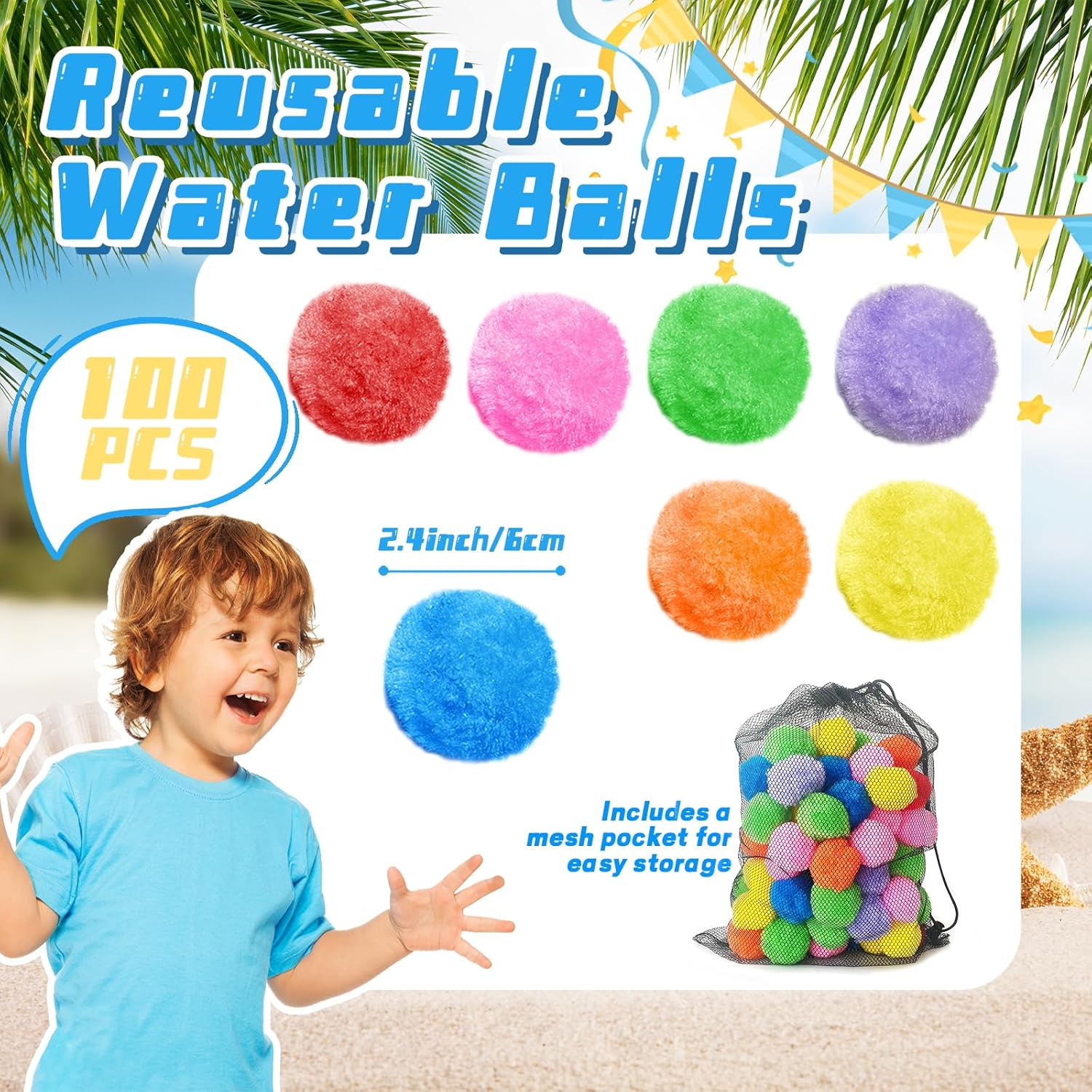 【Reusable Water Balls】100 reusable water balloons(blue,purple,inexperienced,yellow,pink,orange,purple).The diameter of soaker balls are about 2.4 inches which is appropriate for adults and children.The balls provides you with a colourful water recreation.