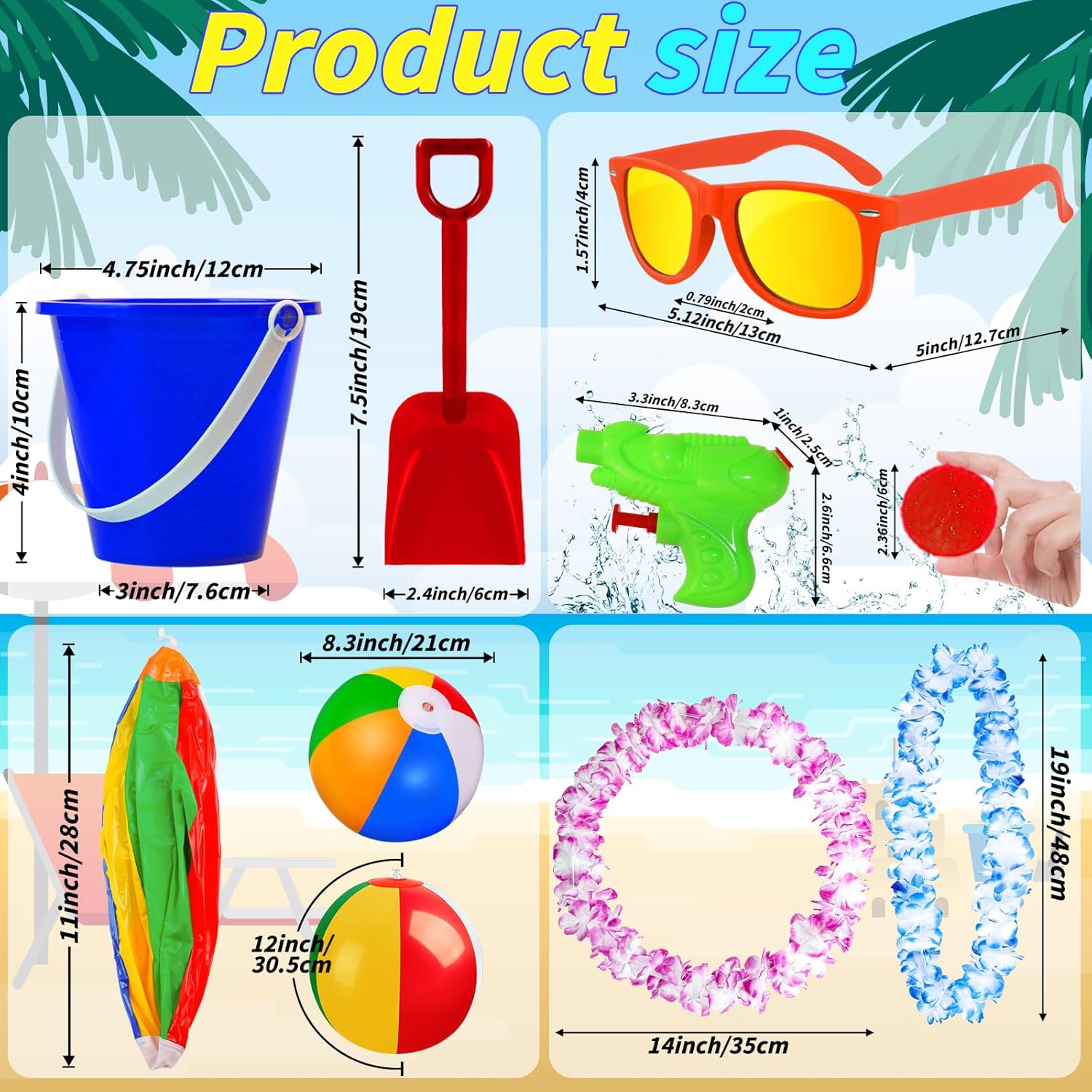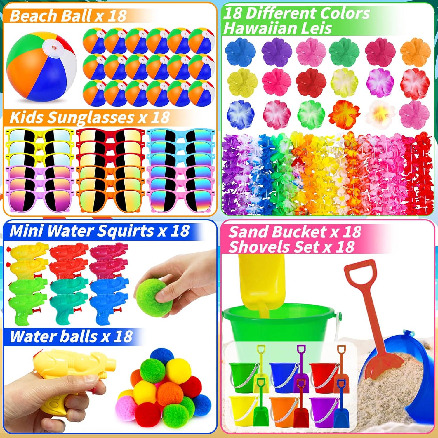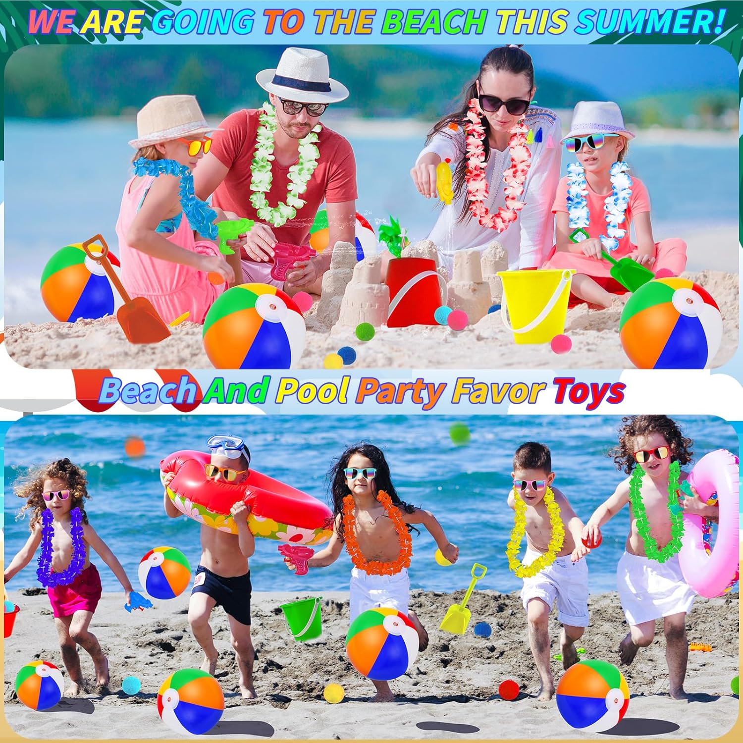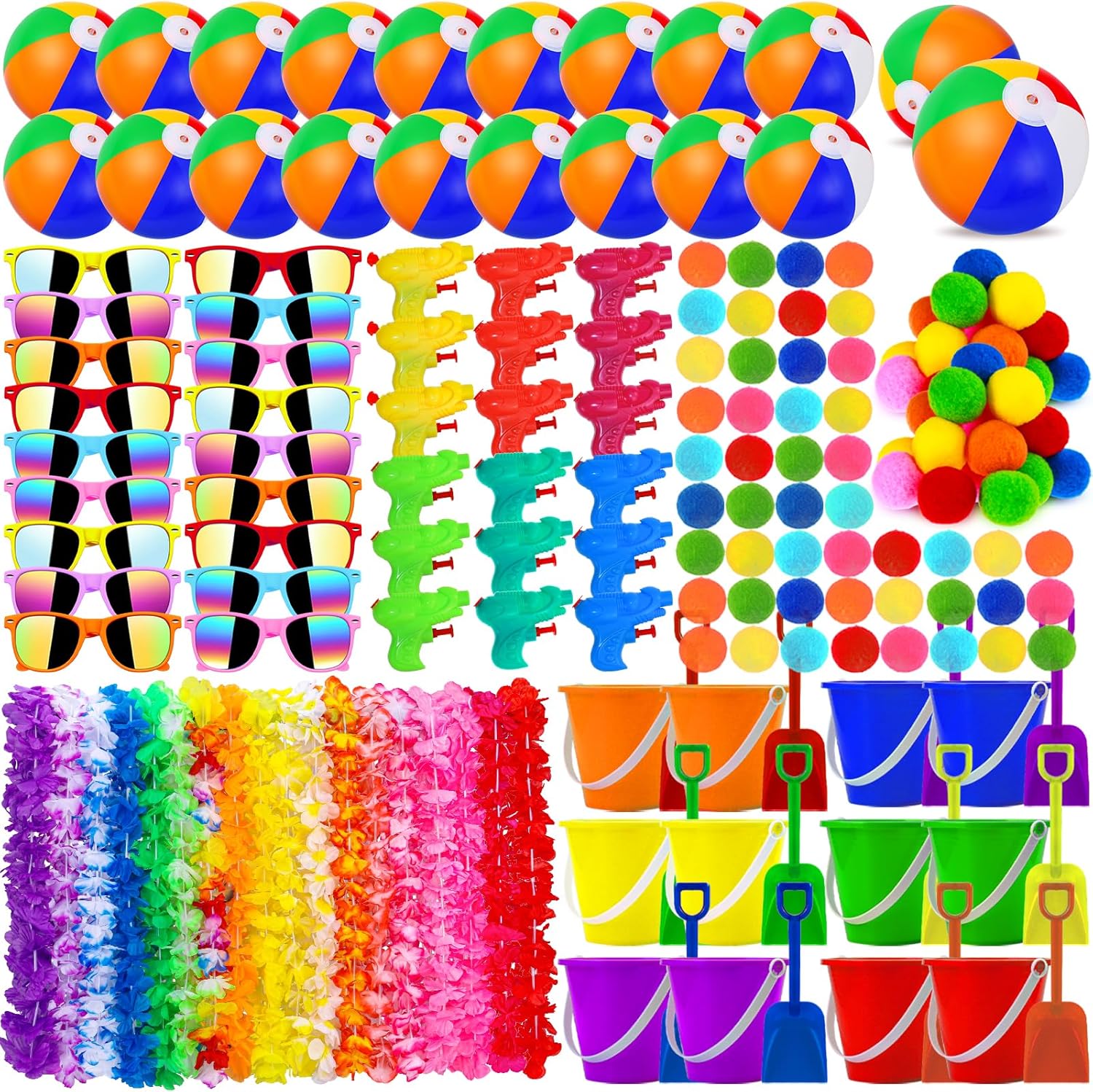 126 Pcs Youngsters Summer time Seashore Get together Favors Bulk- Contains 18 Inflatable Seashore Balls, 36 Sand Bucket and Shovels Set, 18 Neon Sun shades, 18 Water Weapons,18 Water Balls,18 Hawaiian Leis for Luau Get together Decor