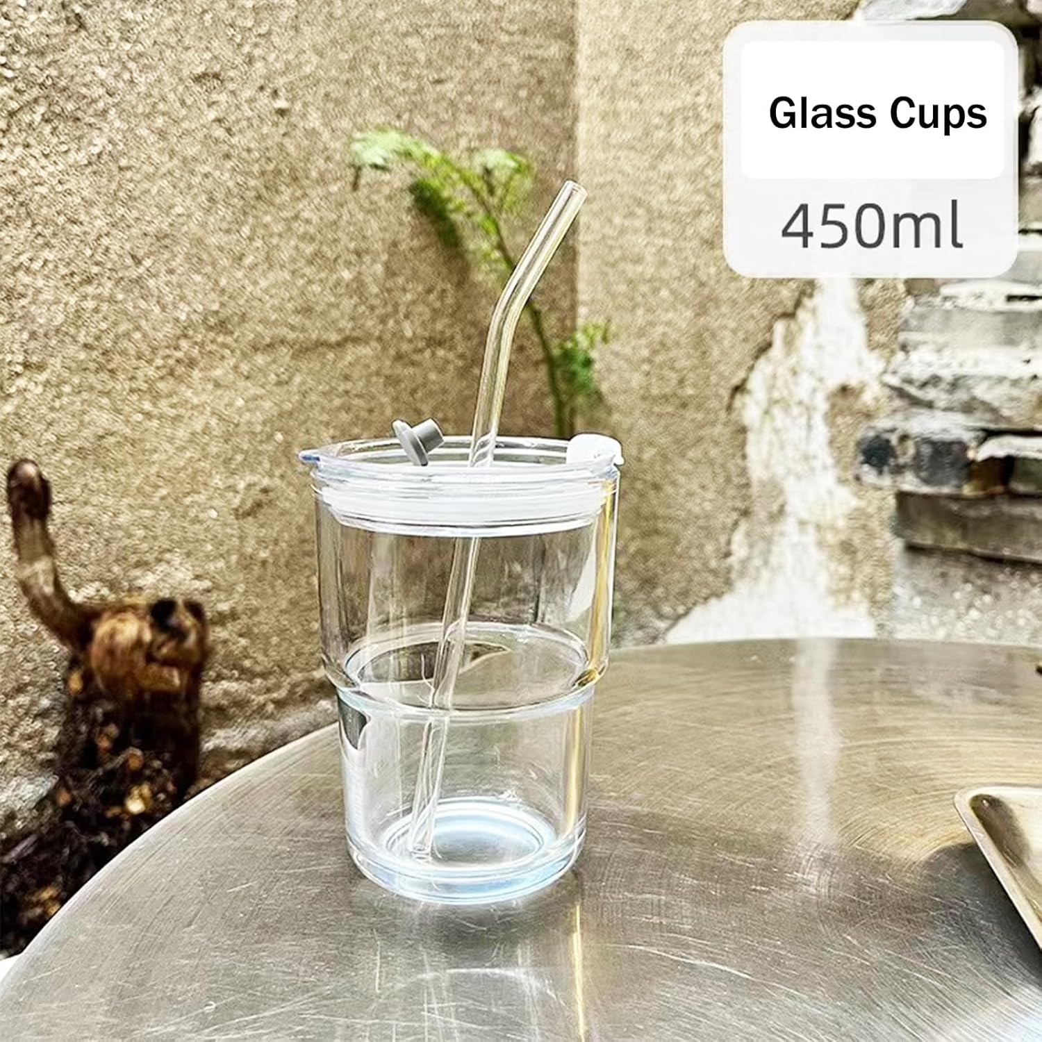 Reuseable Glass Cups: glass cups with lids and straws,iced espresso cup,glass tumbler with straw and lid,iced espresso cups with lids,glass tumbler,reusable espresso cup,glass sippy cup,to go espresso mug,water cup with straw and lid,spill proof tumbler with straw,matcha cup,journey cup,this thick wall glass cups is an ideal choise for each day use.
