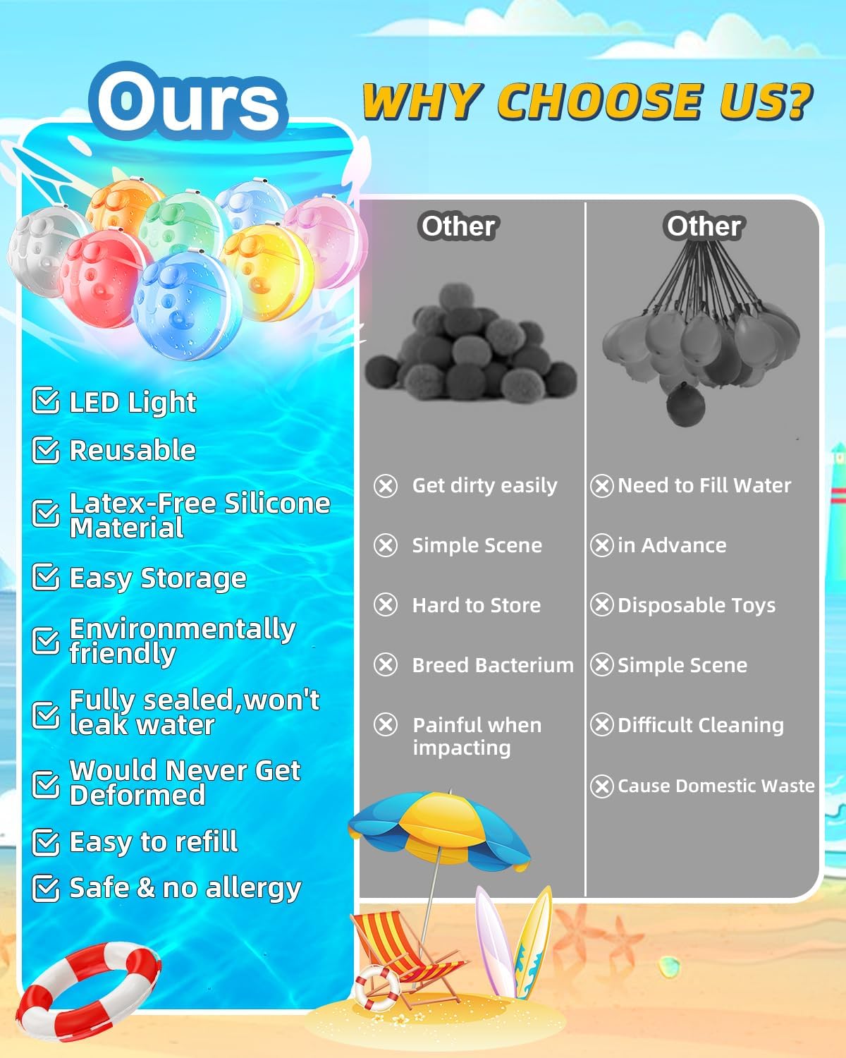 🌈【Upgraded Led Gentle Reusable Water Balloons】Our BUBBLE FUN reusable water balloons with the newest upgraded magnetic expertise and intensely sturdy high-quality silicone will final for years of summer season enjoyable enjoyment. This new out of doors summer season toy is designed in vibrant colours, with built-in led lights, which may be lit for 25 seconds each time you contact it, and can be utilized repeatedly which may convey plenty of enjoyable to your children, family and friends. The magnets throughout the product are thoughtfully hid, leaving no uncovered components and offering a worry-free play expertise for kids.