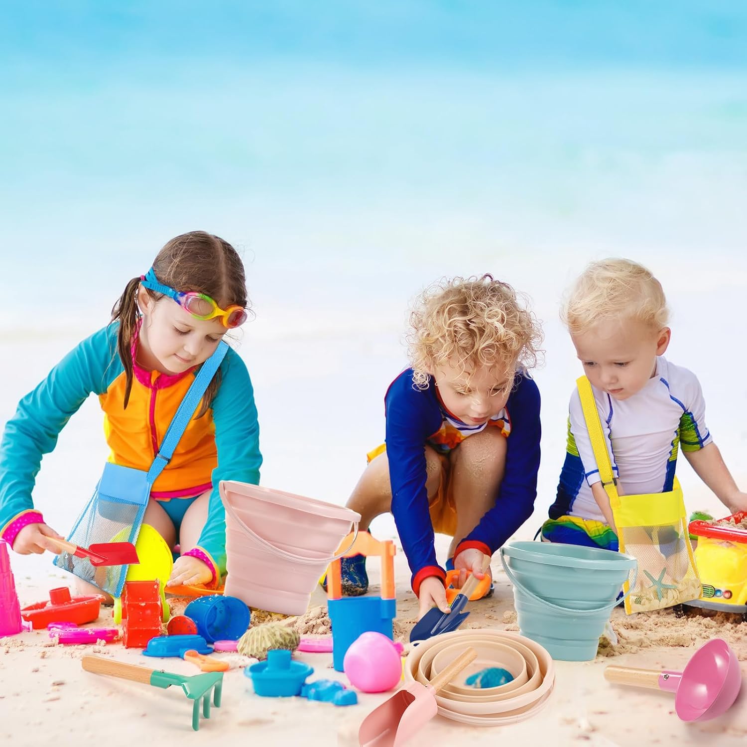 Full Summer season Set: dive into the enjoyable stuffed summer time season with our full seashore set! The bundle contains 6 collapsible sand buckets, 6 sturdy seashore instruments, and 6 seashell luggage; This complete set ensures your little ones have the gadgets they want for an excellent summer time seashore expertise; Let the sand castles constructing contest start