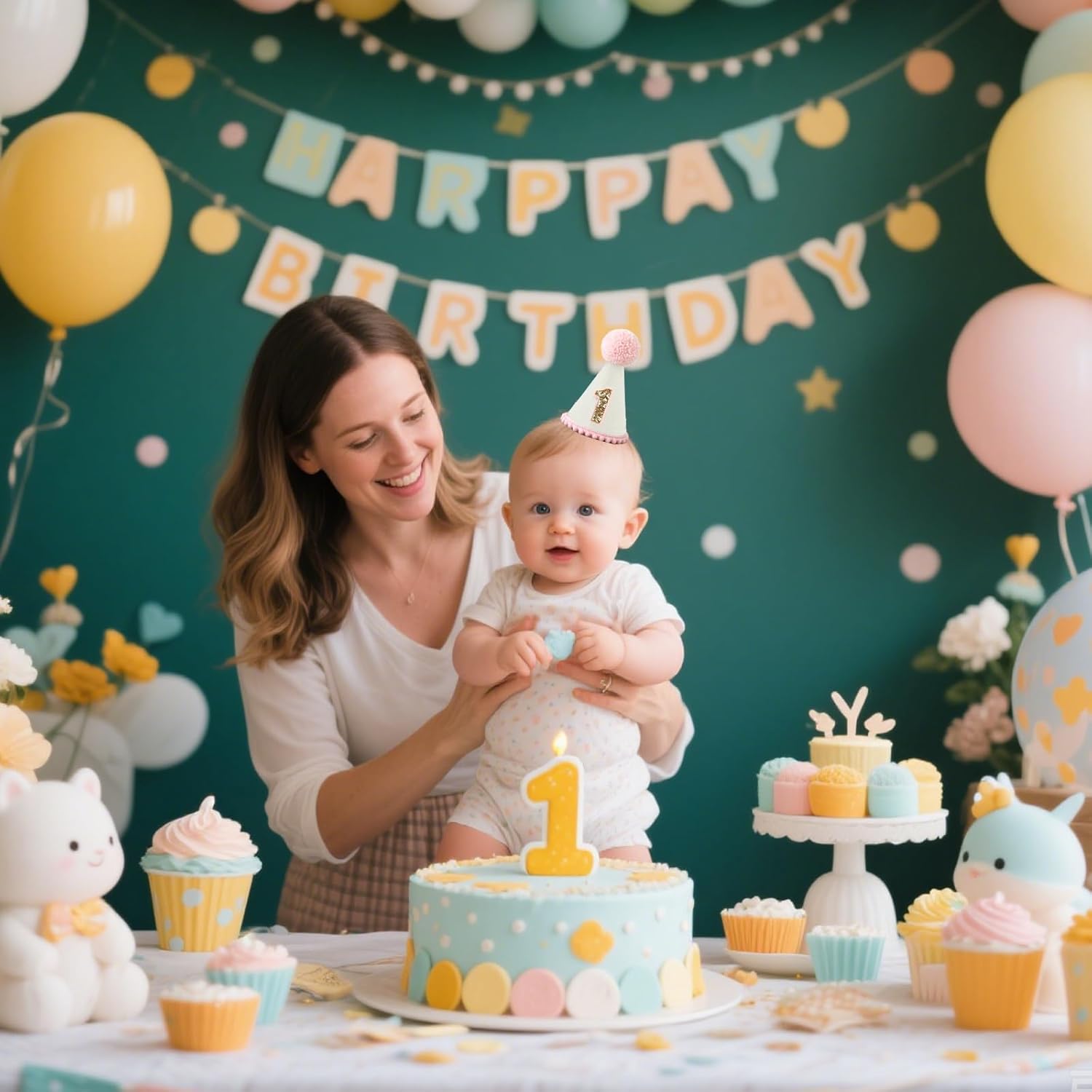 1st Birthday Hat for Child Women First Birthday Celebration Impartial Get together Hat for Cake Smash Prop Get together Outfit Decorations