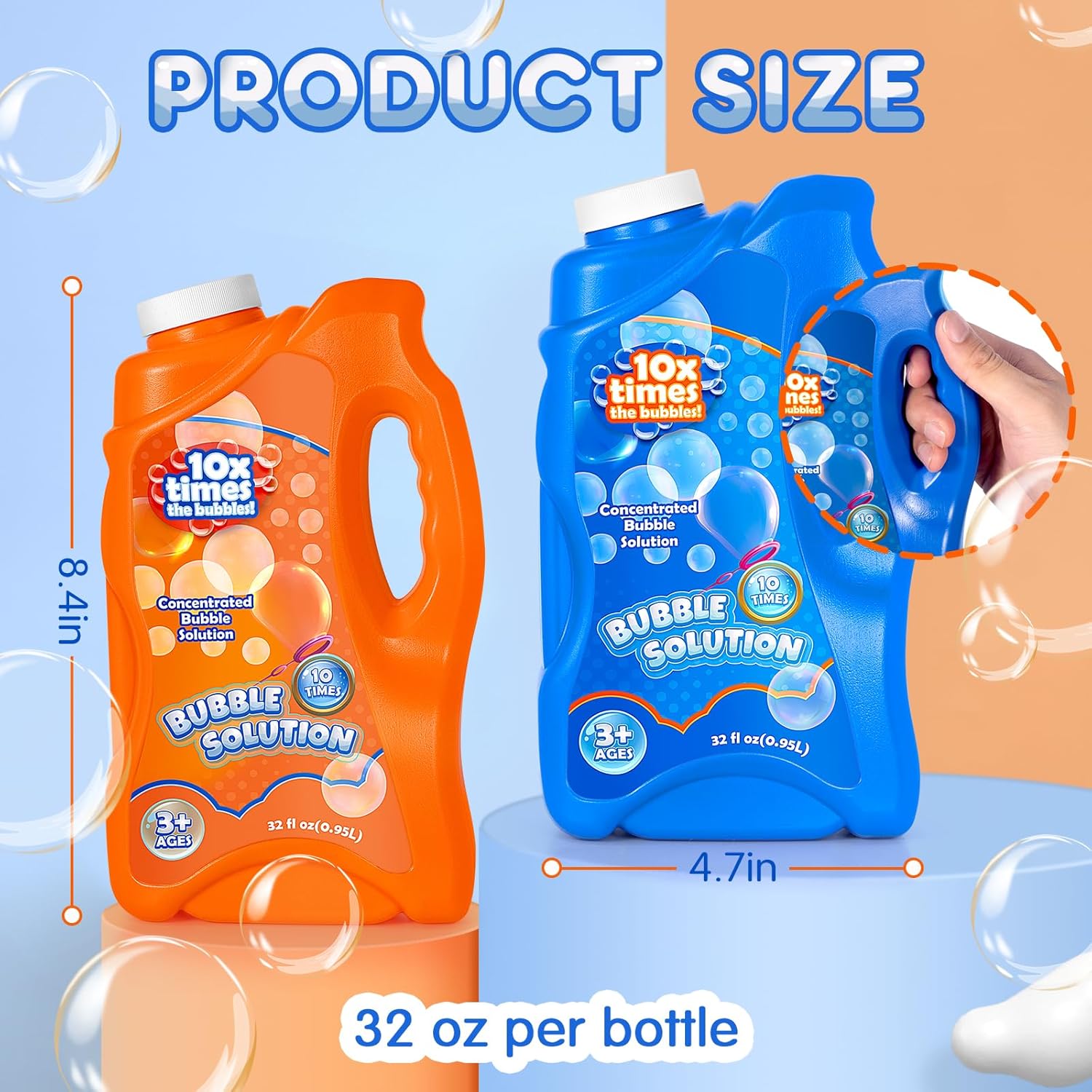 CAPACITY OF UP TO 64 OUNCES: This bubble resolution has a big capability, lengthy usable time, and produces a lot of bubbles every time you blow bubbles. The bubbles refill can produce large bubbles and small bubbles for full entry to enjoyable.