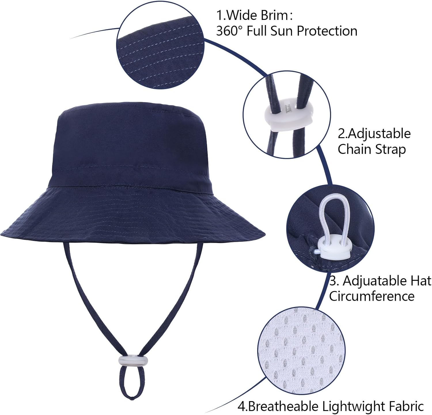 2 Packs Baby Sun Hat Toddler Boys Girls Bucket Hat UPF 50+ Sun Protection Summer Hats for Beach