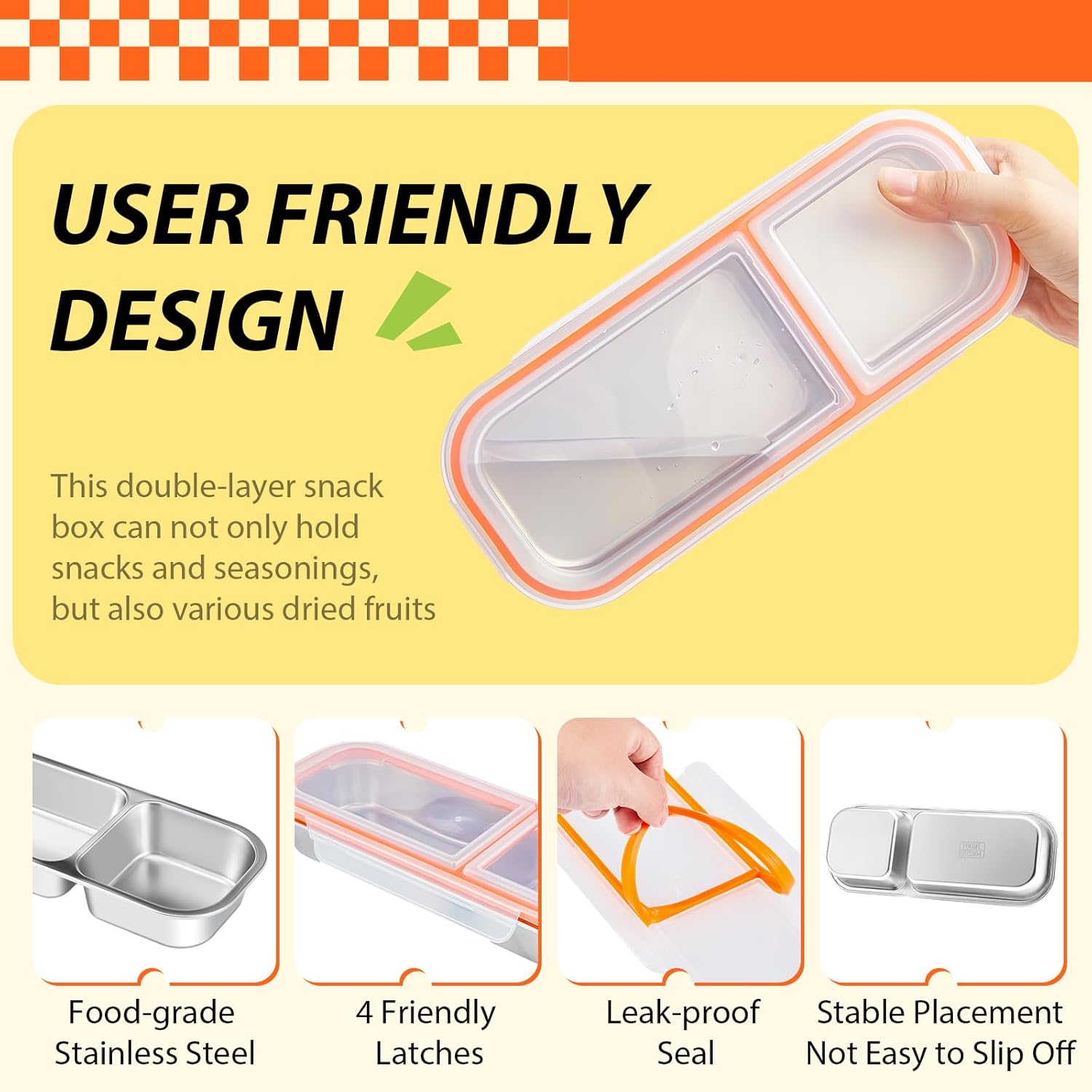 Double Compartment Design: you’ll obtain two double compartment snack bins, which lets you simply retailer and carry quite a lot of snacks; This modern design keep away from meals from mixing, permitting you to maintain meals contemporary and scrumptious when touring, picnics or college lunches, and is straightforward to hold