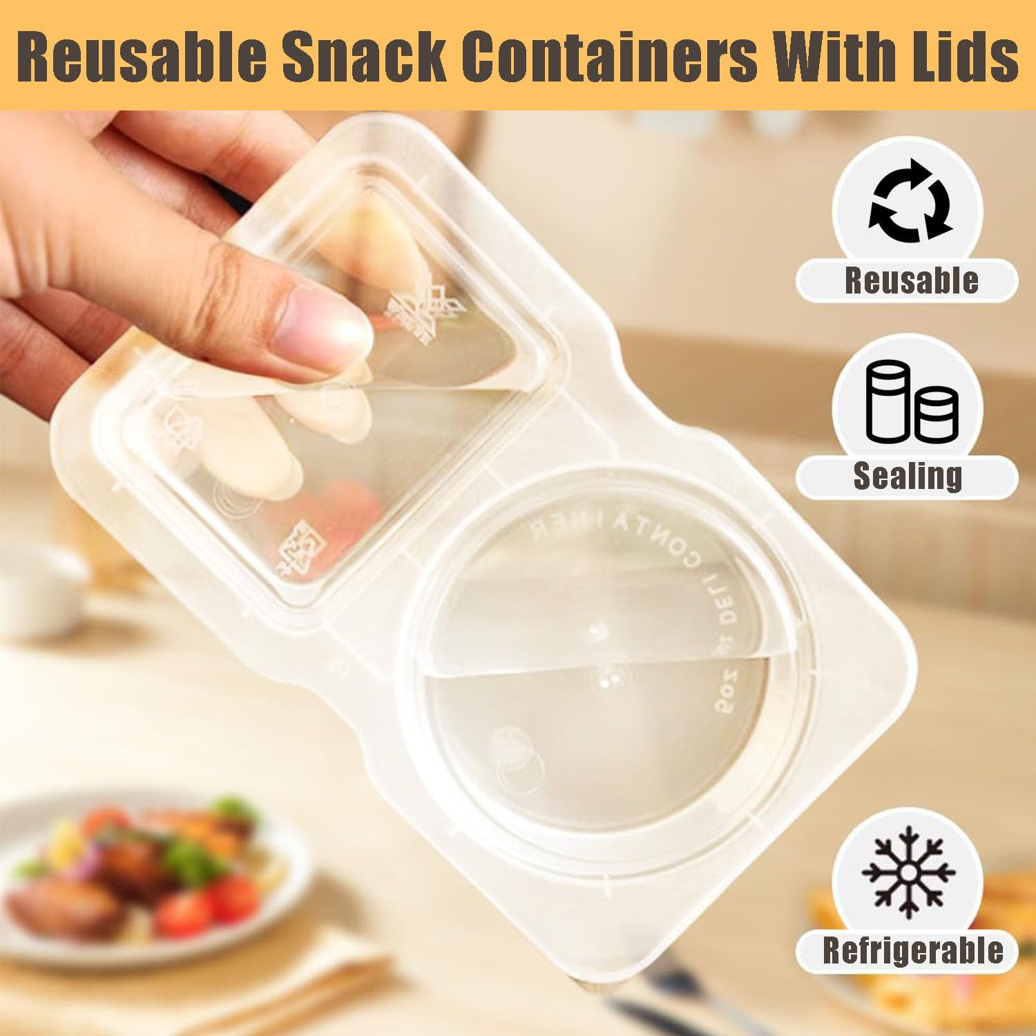 Disposable And Reusable: The reusable snack container with lid is thickened, sturdy, dishwasher-safe, and could be reused a number of instances or discarded after one use, making it handy to remove