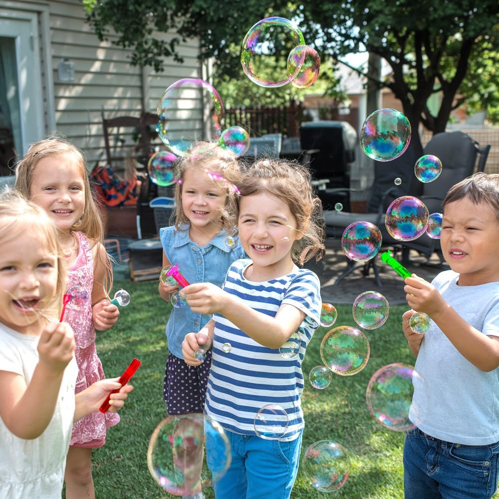 【Protected for Youngsters】These bubbles toys bulk are prefilled with non-toxic cleaning soap resolution. There isn’t any residue on palms and fabric. Very Protected to children’ pores and skin and face. Youngsters can simply blow out coloured bubbles within the solar.