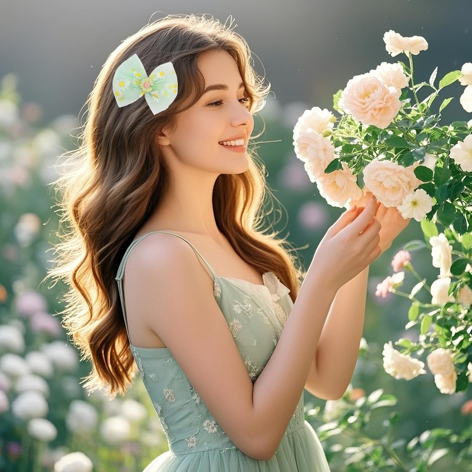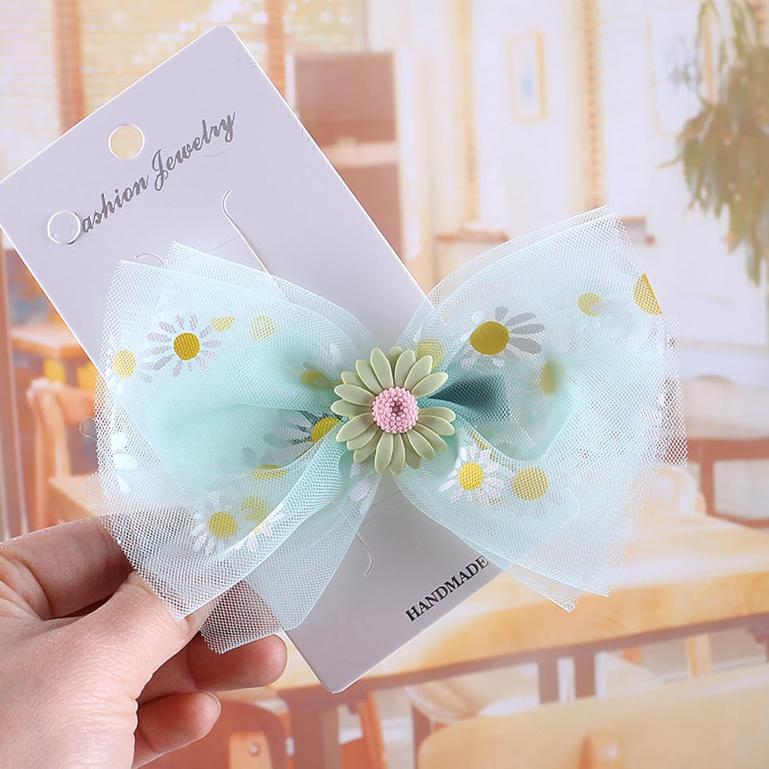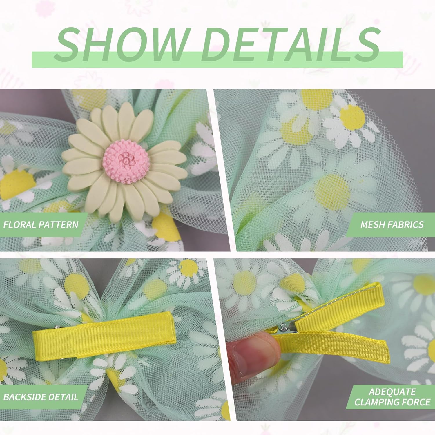 Brilliant yellow, contemporary inexperienced, candy pink, elegant blue, these cute hair clips characteristic a basic bow design with delicate daisy patterns printed on the floor and adorned with daisy decorations, including a romantic girlish vibe and simple to match with attire, straw hats, and different clothes