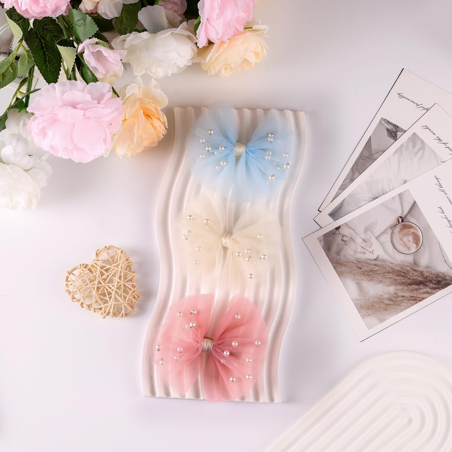 Premium Materials – These toddler hair clips are comprised of delicate lace veil cloth and adorned with cute pearls. They’re 100% handmade, making certain a tender,light-weight really feel and lasting sturdiness. The clips are immune to fading,deformation, and breakage, sustaining their elegant look over time.