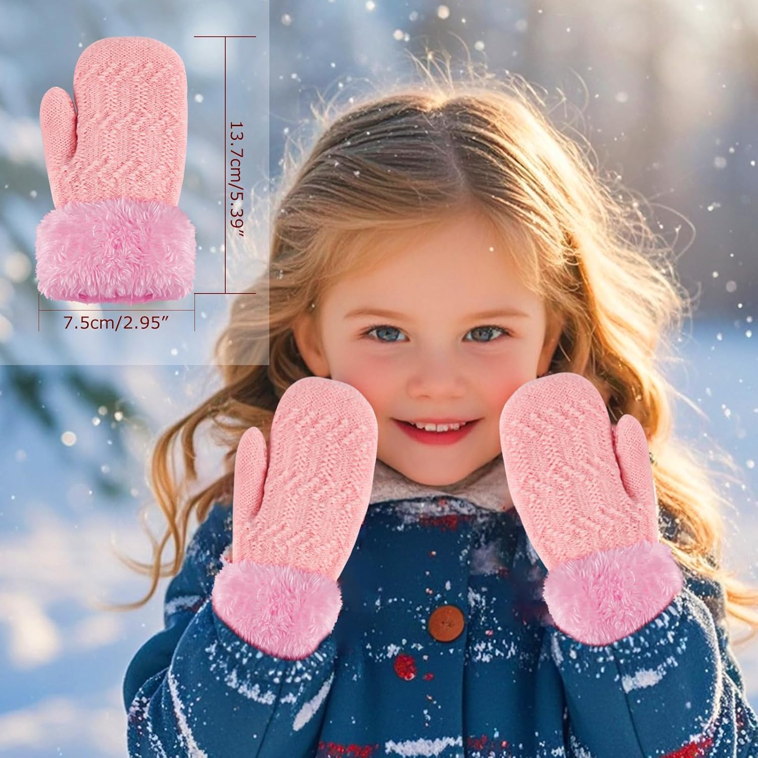 Toddler Winter Gloves Mittens Heat Knit Fleece Lined Gloves for Child Women Boys