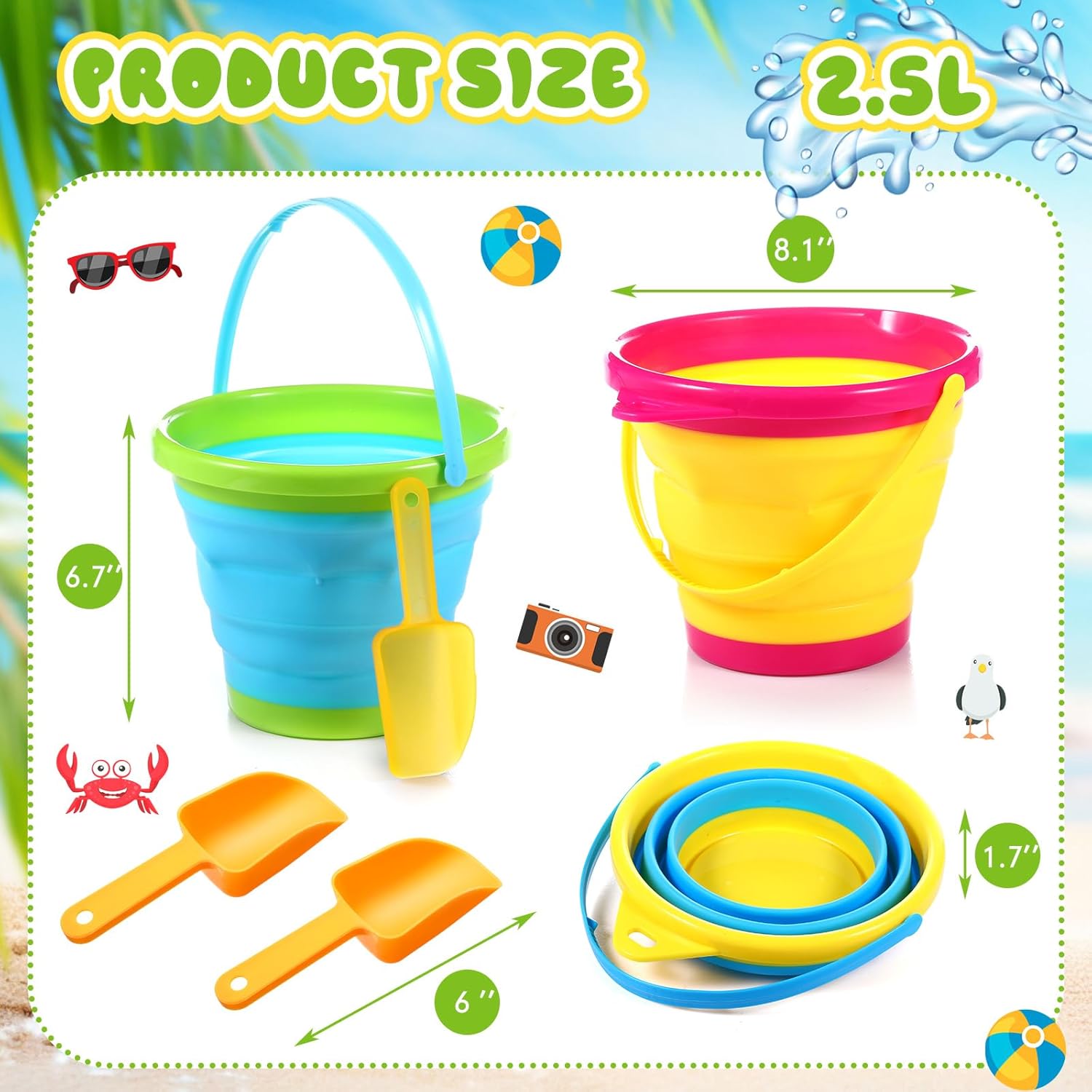 Seashore Get together Provides: consists of 3 pcs of foldable sand buckets with sturdy handles, together with 3 colours, together with 3 sand shovels; Every bucket unfolds to a beneficiant dimension of roughly 9 x 6.7 inches with a capability of two.5 liters/ 0.66 gallon; The considerate mixture of seashore toys is bound to be cherished by your girls and boys