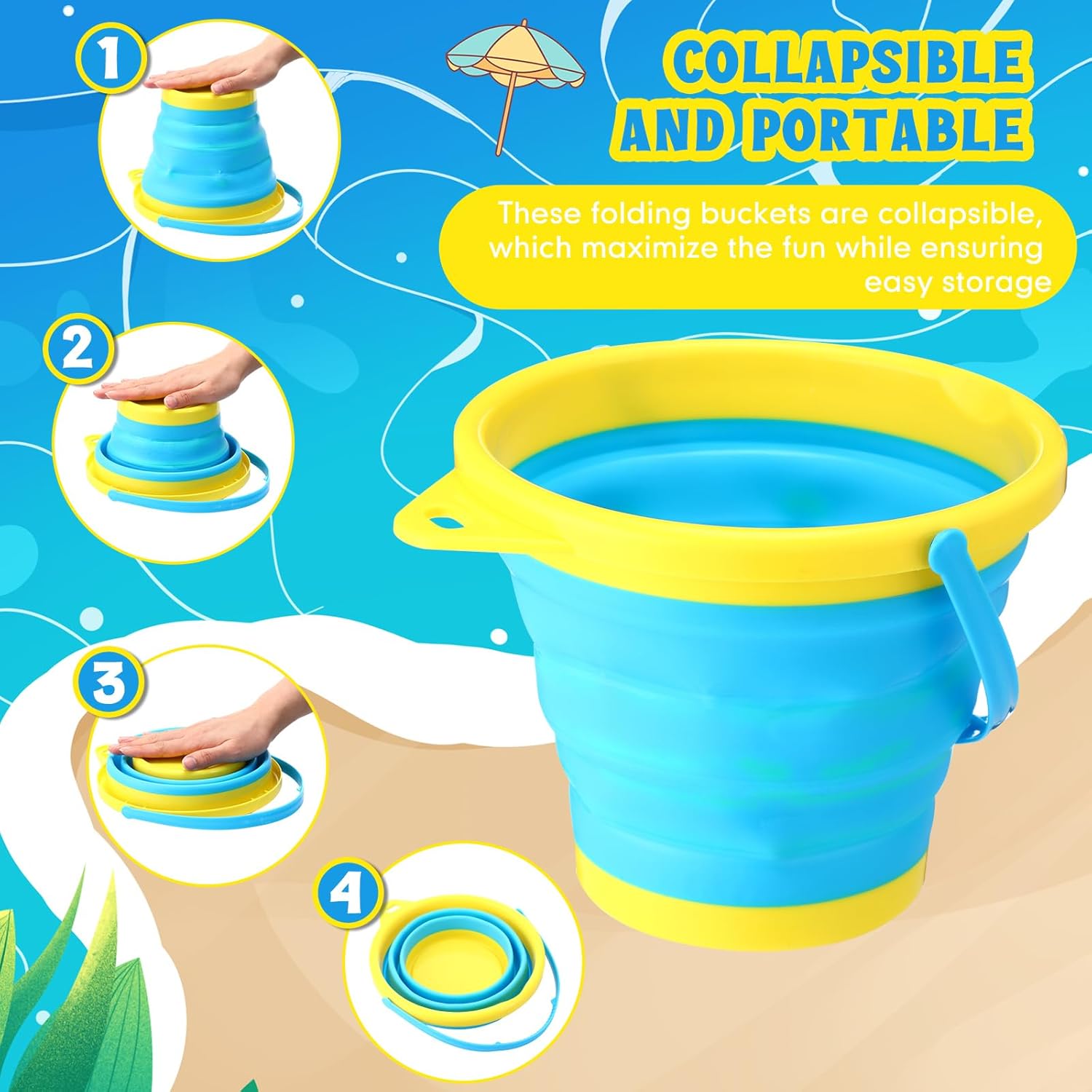 Silicone Materials: collapsible seashore buckets are meticulously crafted from silicone, ensures that these buckets are leakproof, reusable and lengthy lasting; These buckets guarantee secure utilization in your little ones, making these best equipment for his or her playtime, whether or not it’s sport time on the seashore or a celebration within the backyard