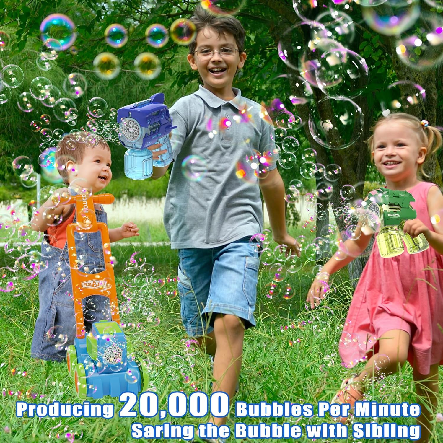 Double the Enjoyable: get three bubble machine on this set, good for sharing the enjoyment of bubble-blasting with sibling. The bubble garden mower it performs life like mowing noises that children love when is pushed, and cute dinosaur and shark formed bubble weapons are partaking for youths. They are going to creating memorable moments and limitless laughter.