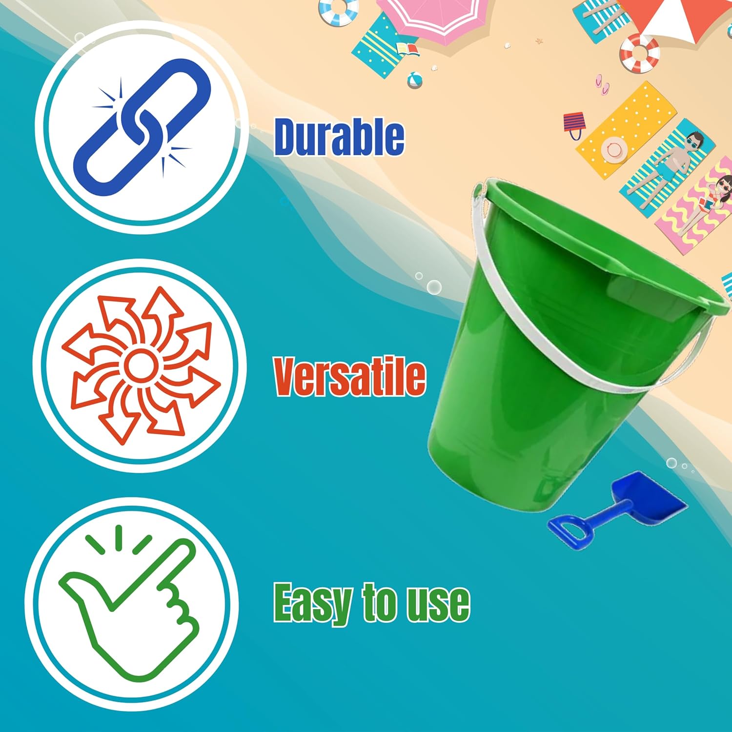 PERFECT SIZE: Every bucket options handy carrying deal with and preferrred capability for constructing sandcastles or amassing treasures