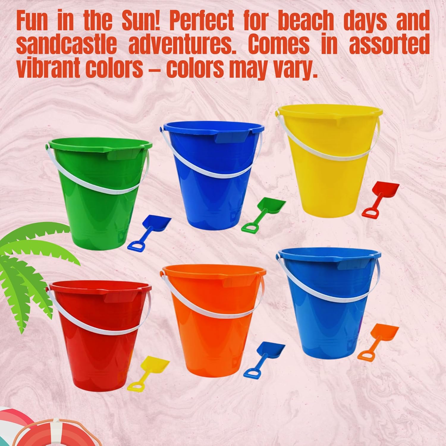 VIBRANT COLORS: Set contains crimson, inexperienced, pink, and orange buckets with coordinating coloured shovels for straightforward group. COLORS MAY VARY SELECTED AT RANDOM