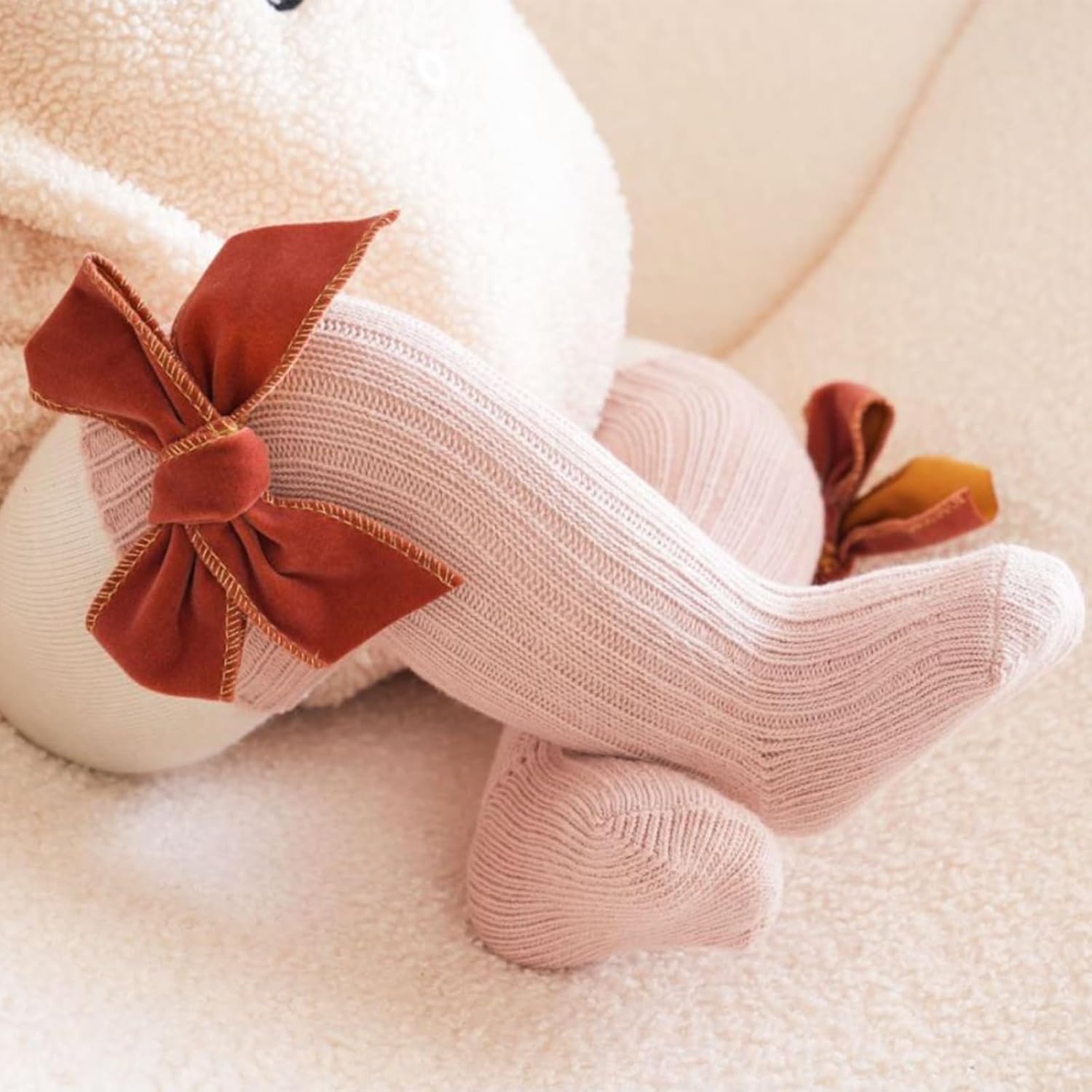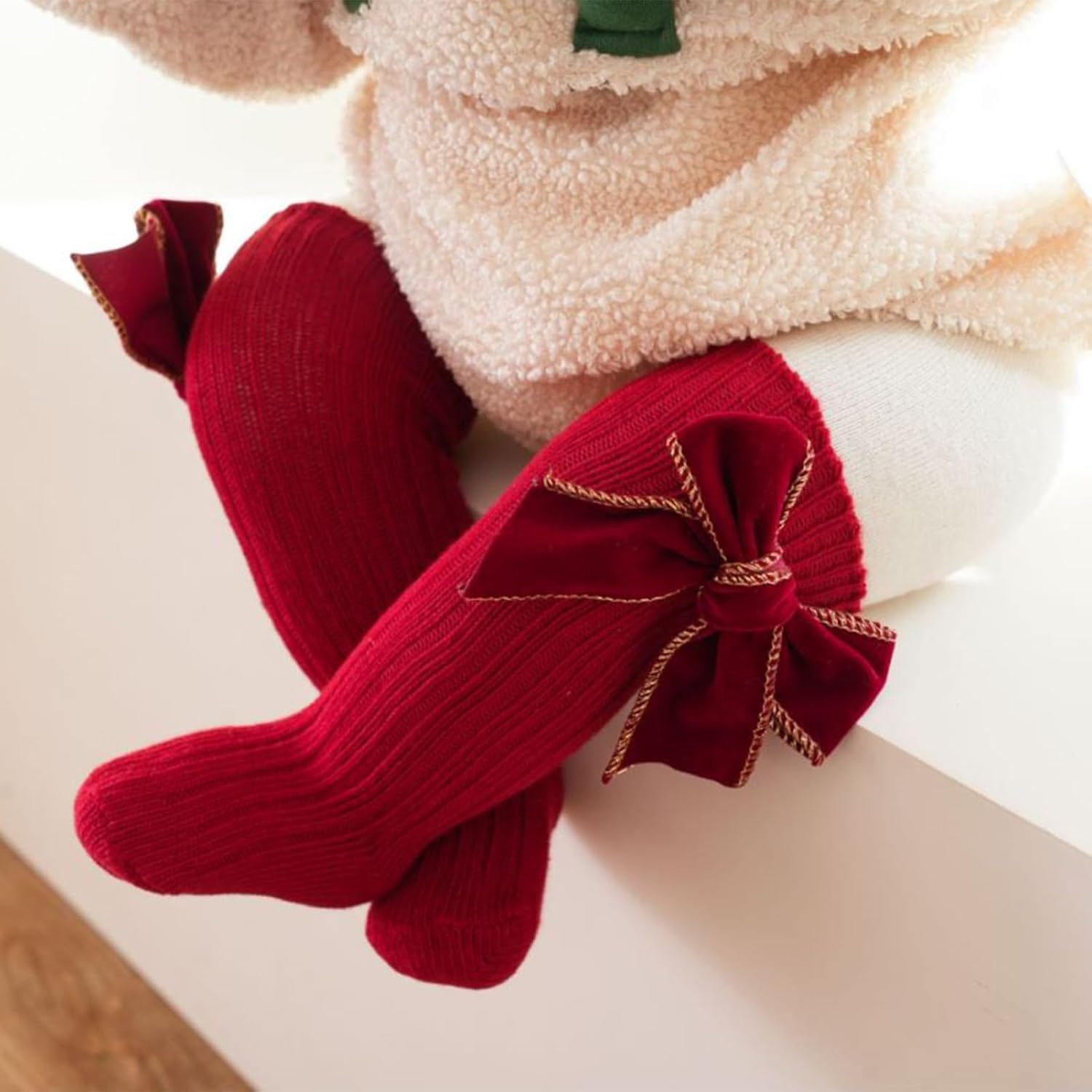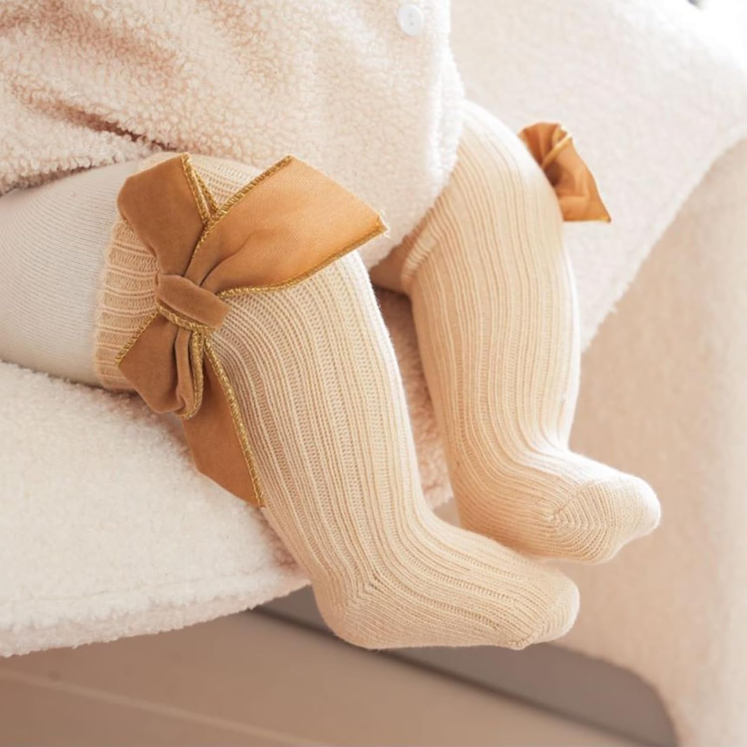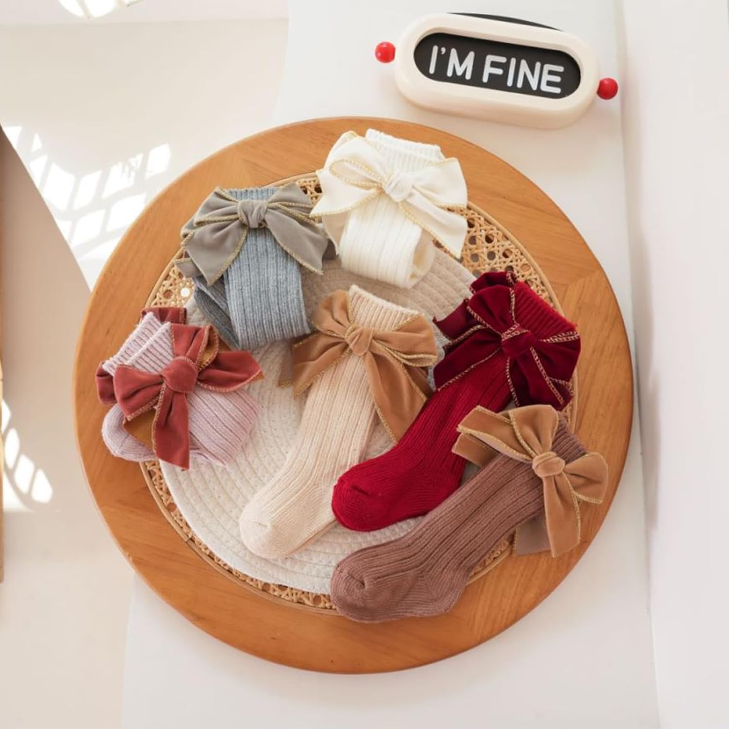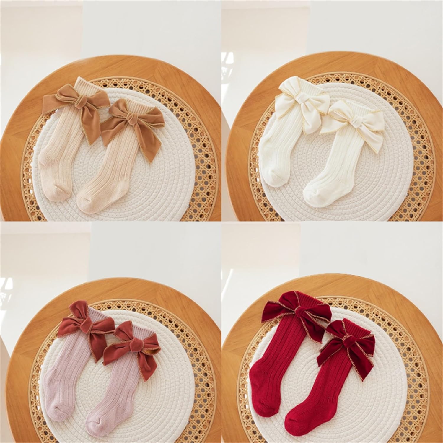 4-Pack Child Woman Knee Excessive Socks with Velvet Bows 0-5T Infants Toddlers Cotton Rib Knit Lengthy Socks Stockings