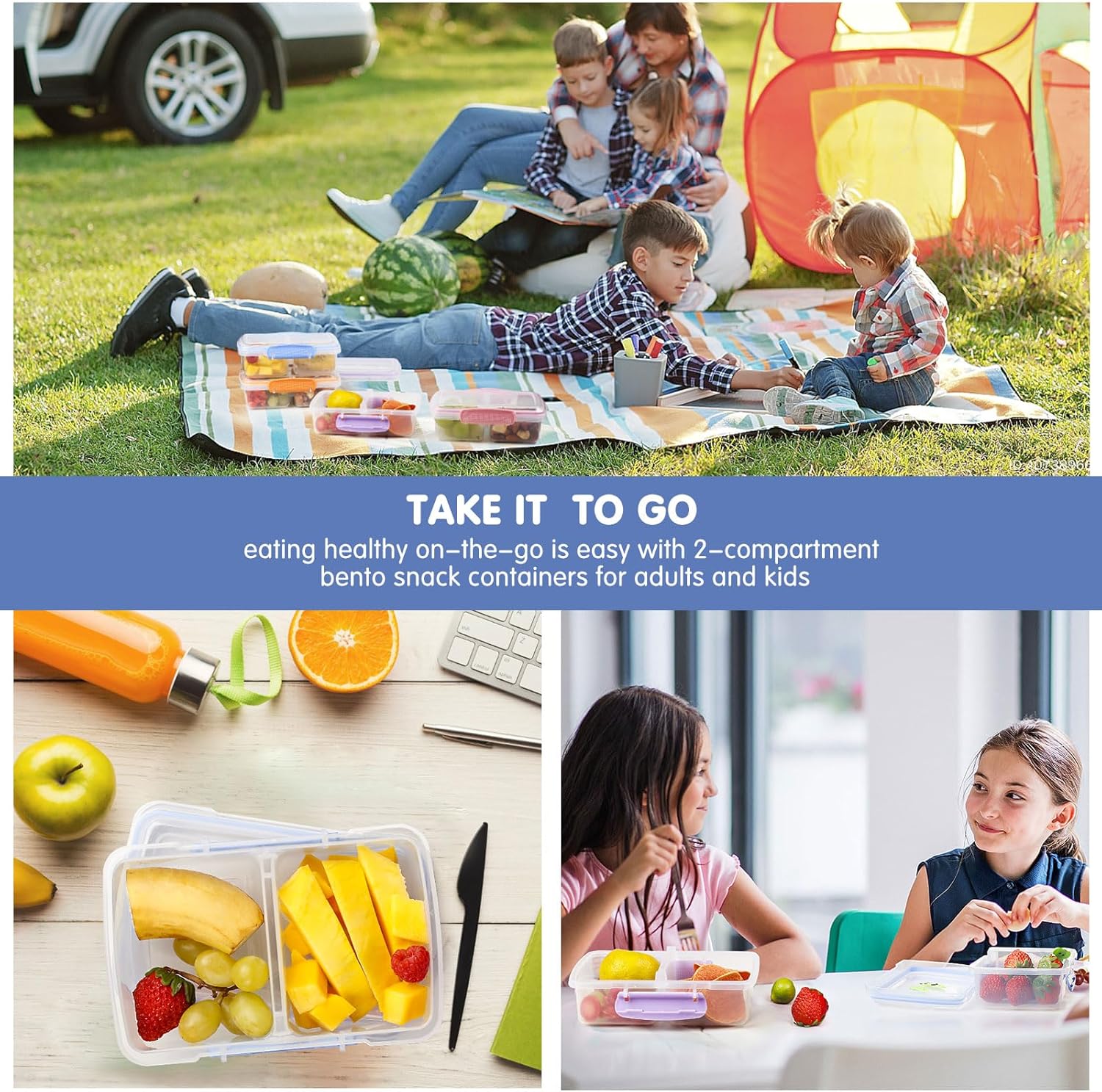 GREAT FOR SNACKS – Simply pack and arrange your favourite snacks with these 2 compartment snack containers. Good for teenagers’ lunches, journey, and comes with forks for added comfort. Sturdy and reusable, these snack containers make wholesome snacking on-the-go a breeze.