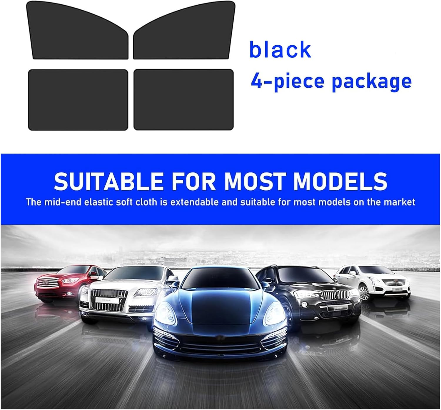 Flygun 4 PCS Automotive Aspect Window Solar Shade, 24.40In x 18.89In x 12.99In Entrance Window Solar Safety, 31.49In x 18.89In Rear Window Warmth Insulation, Common Foldable Breathable Gauze (Black)