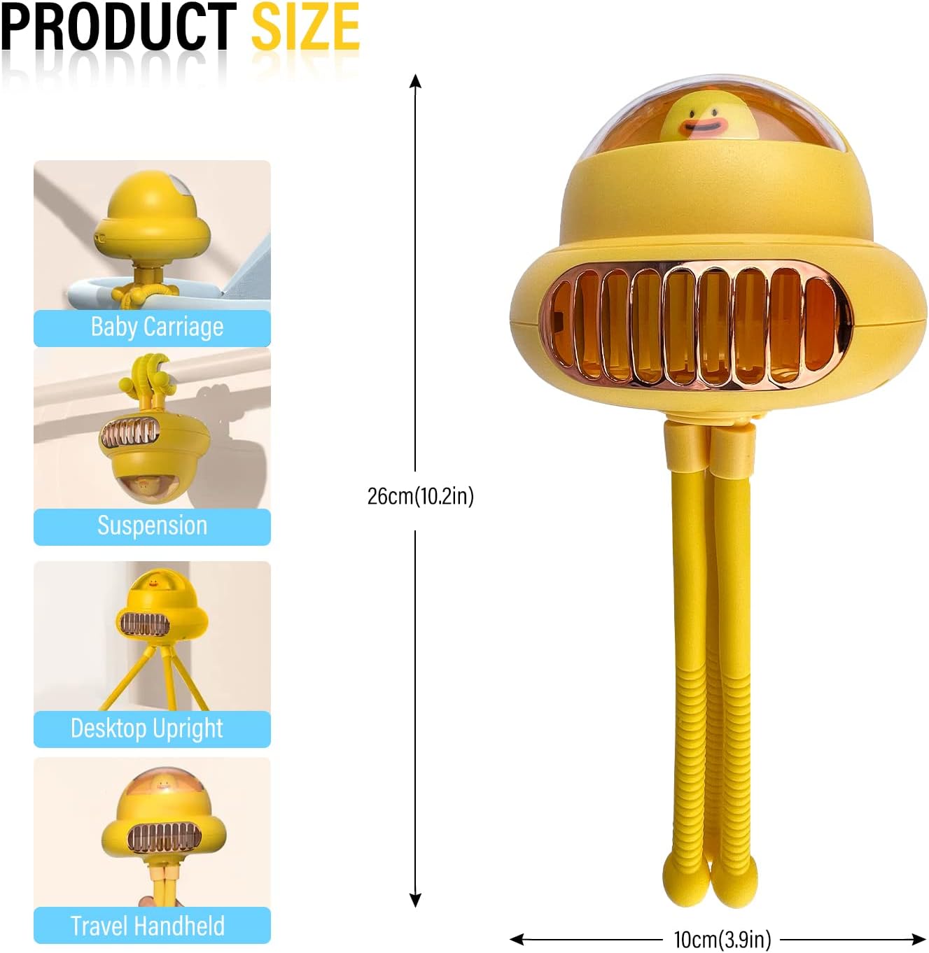 Product Description: 1.Materials: ABS+PC 2.Battery sort: 2 lithium batteries; 3.Improve capability: 4000mAh 4.Gear: third gear wind; 5.Enter energy: 5V/1A 6.Charging interface: Sort-C 7.Battery cycle instances: 600-800 instances; 8.Use time: the utmost gear is 4-5 hours, the minimal gear is about 10 hours; 9.Product dimension: 3.9*3.9*10.2 inch