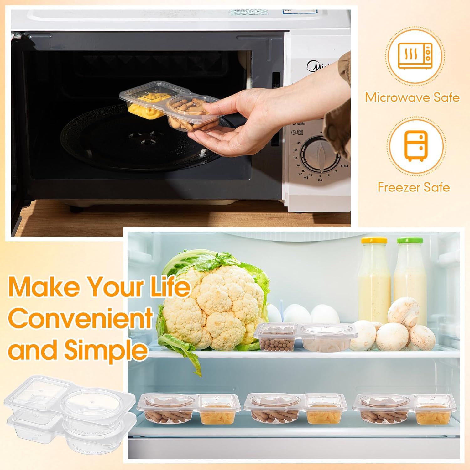 Twin Compartment Design: measuring 5.51 x 3.35 x 0.98 inches, our snack pack containers reusable options two separate compartments, permitting you to retailer totally different snacks, salad dressings, or desserts with out having to fret about them getting blended collectively
