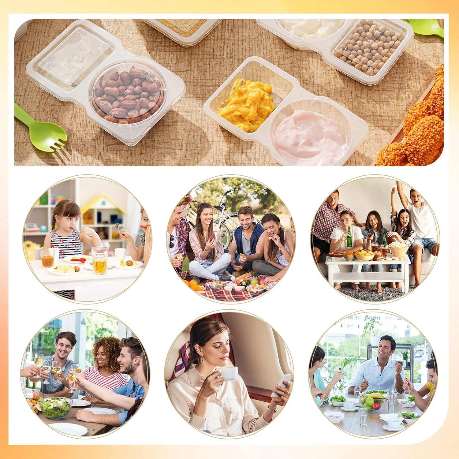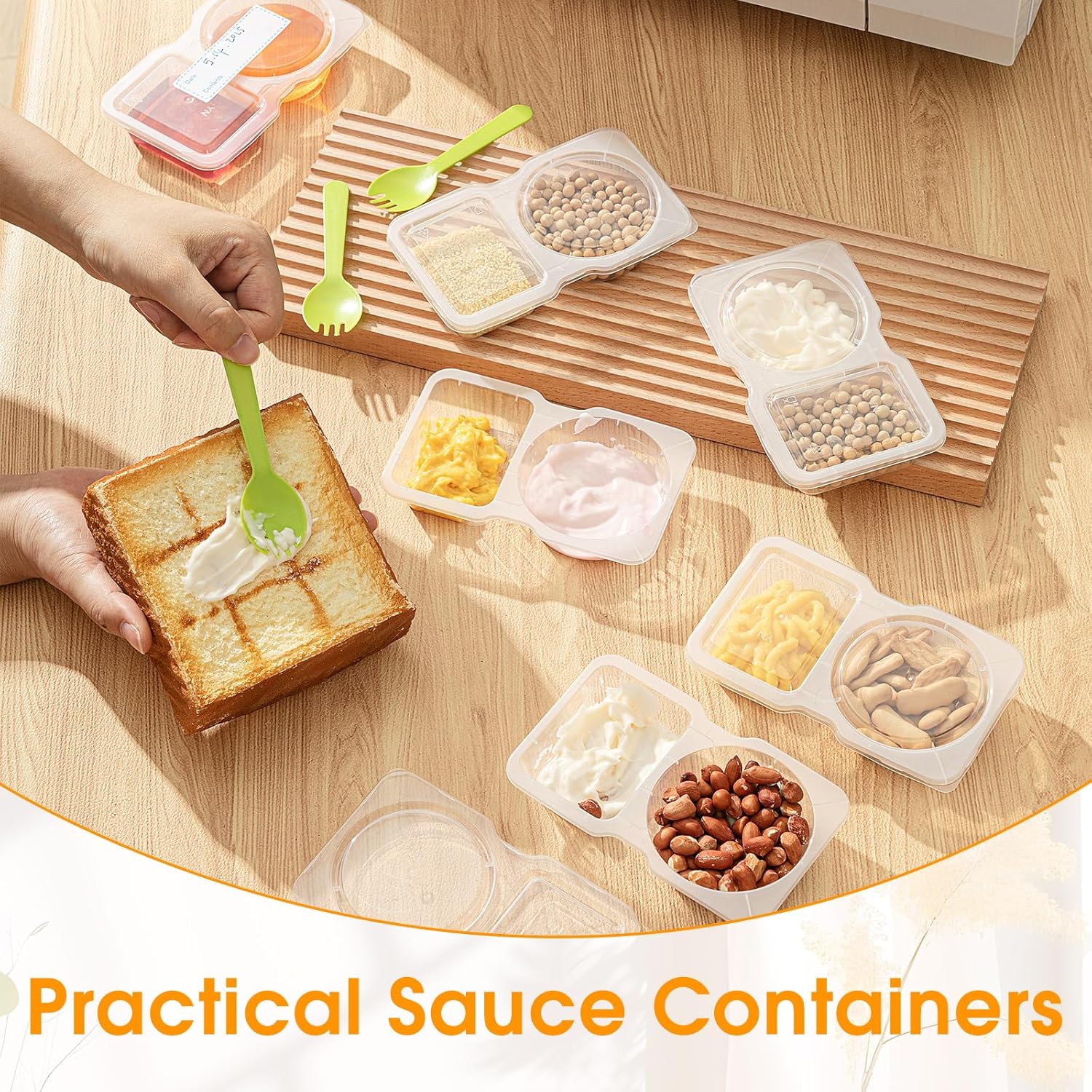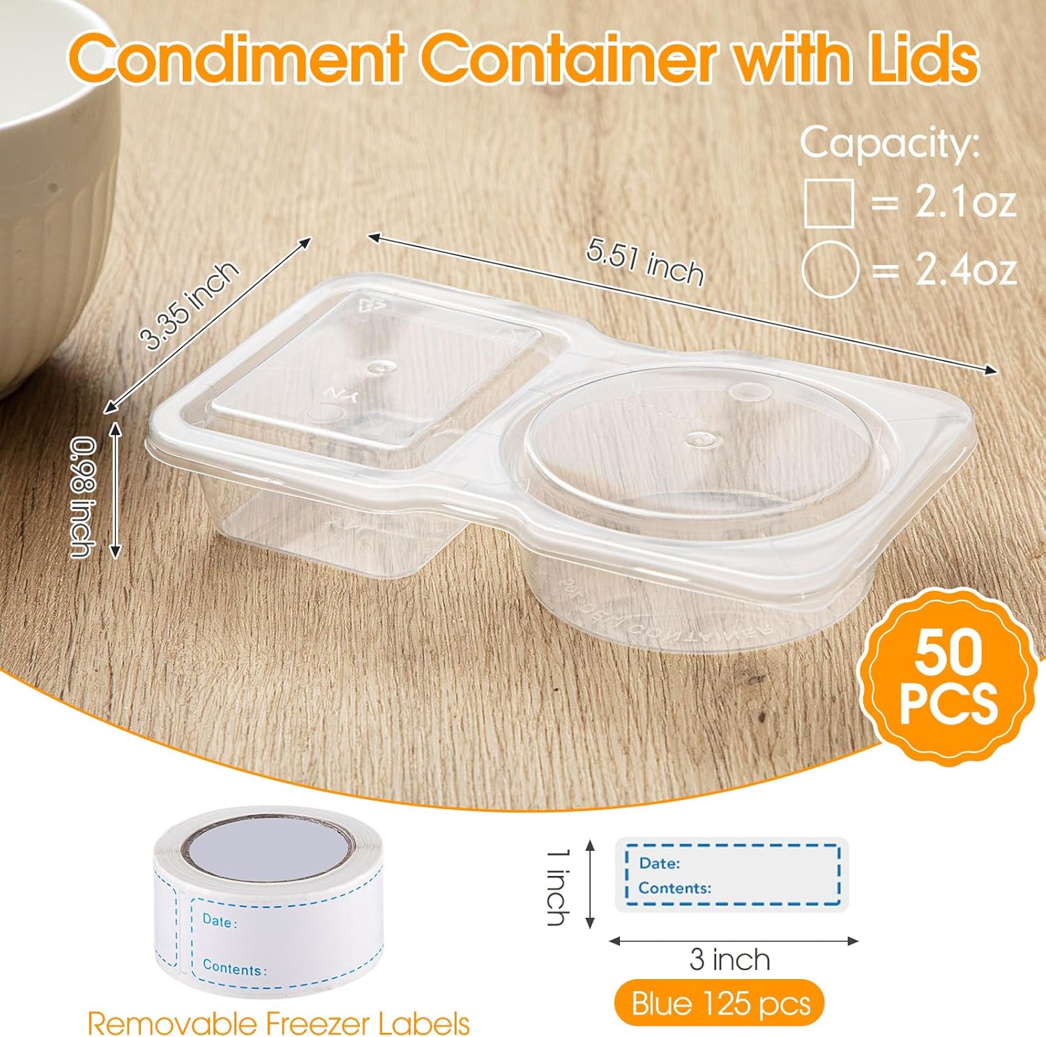 Sensible Packaging: you’ll obtain 50 units double compartment condiment containers with lid, 50 individually wrapped spoons (to make it simpler so that you can get pleasure from your meals on go) and 1 rolls meals stickers (125 sheets in whole, so you possibly can file particular dates or meals classes)