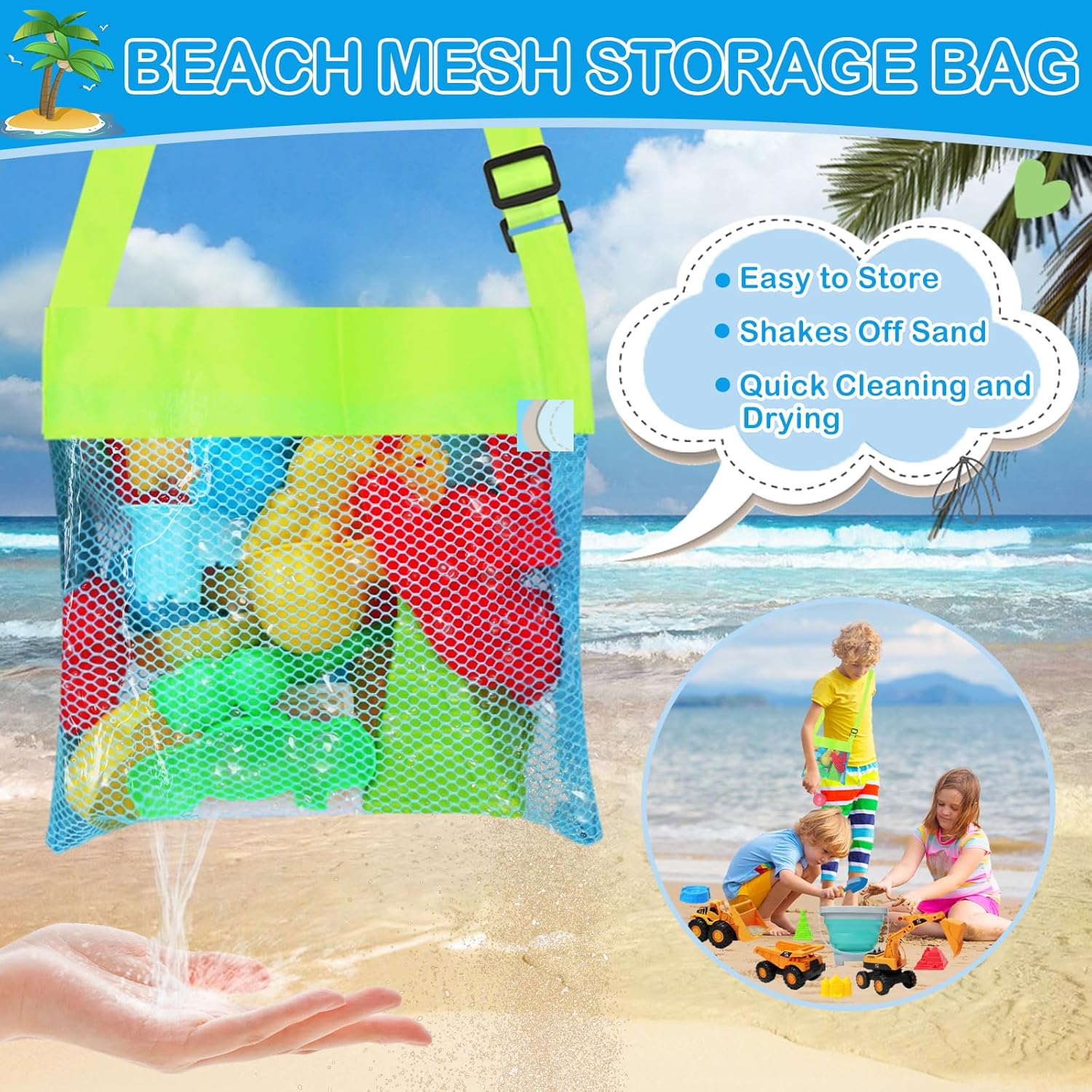 Adjustable Strap Design: The seaside storage bag comes with an adjustable strap for straightforward carrying and ample area to retailer collected objects or private belongings. The mesh bag gives a safe place for these treasures, stopping loss throughout adventures.