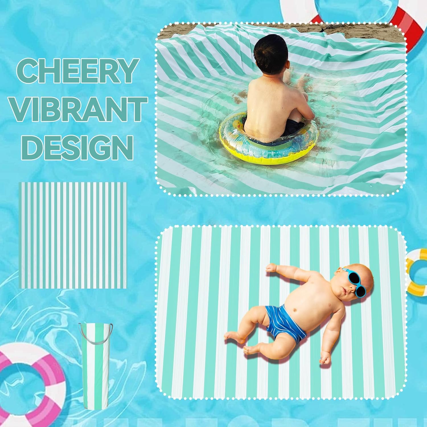 Materials Improve:The seashore mat is made of top quality polyester material, wear-resistant and waterproof, protected and non-toxic, kid-friendly. It may be utilized to varied out of doors environmental circumstances, straightforward to scrub, can be utilized for a very long time,to make sure that your little one could have enjoyable for a very long time on the seashore or within the pool.