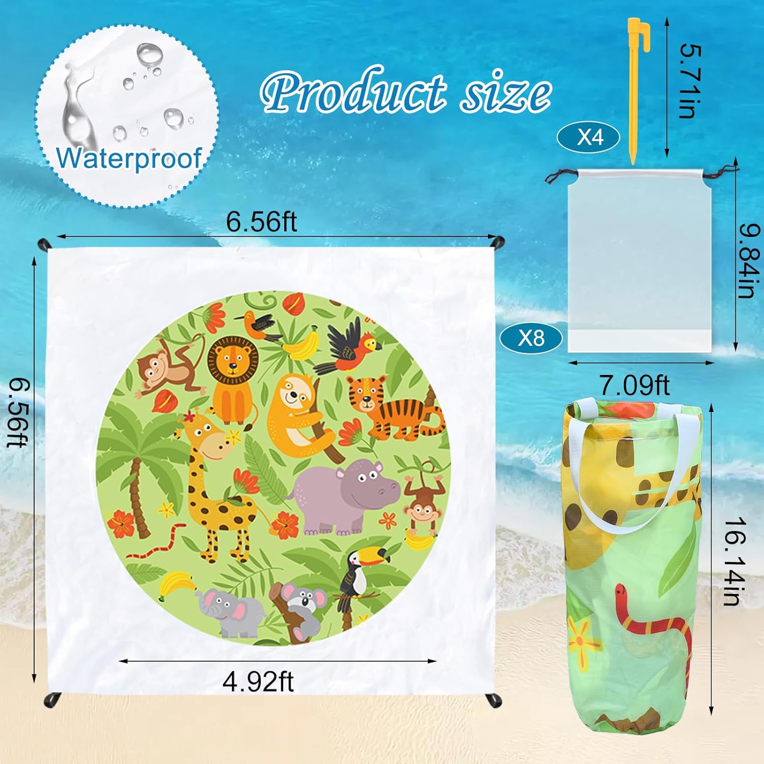 Ddurable Materials: The seaside mat is made of top of the range polyester material, wear-resistant and waterproof, secure and non-toxic, kid-friendly. It may be utilized to varied out of doors environmental circumstances, straightforward to scrub, can be utilized for a very long time.