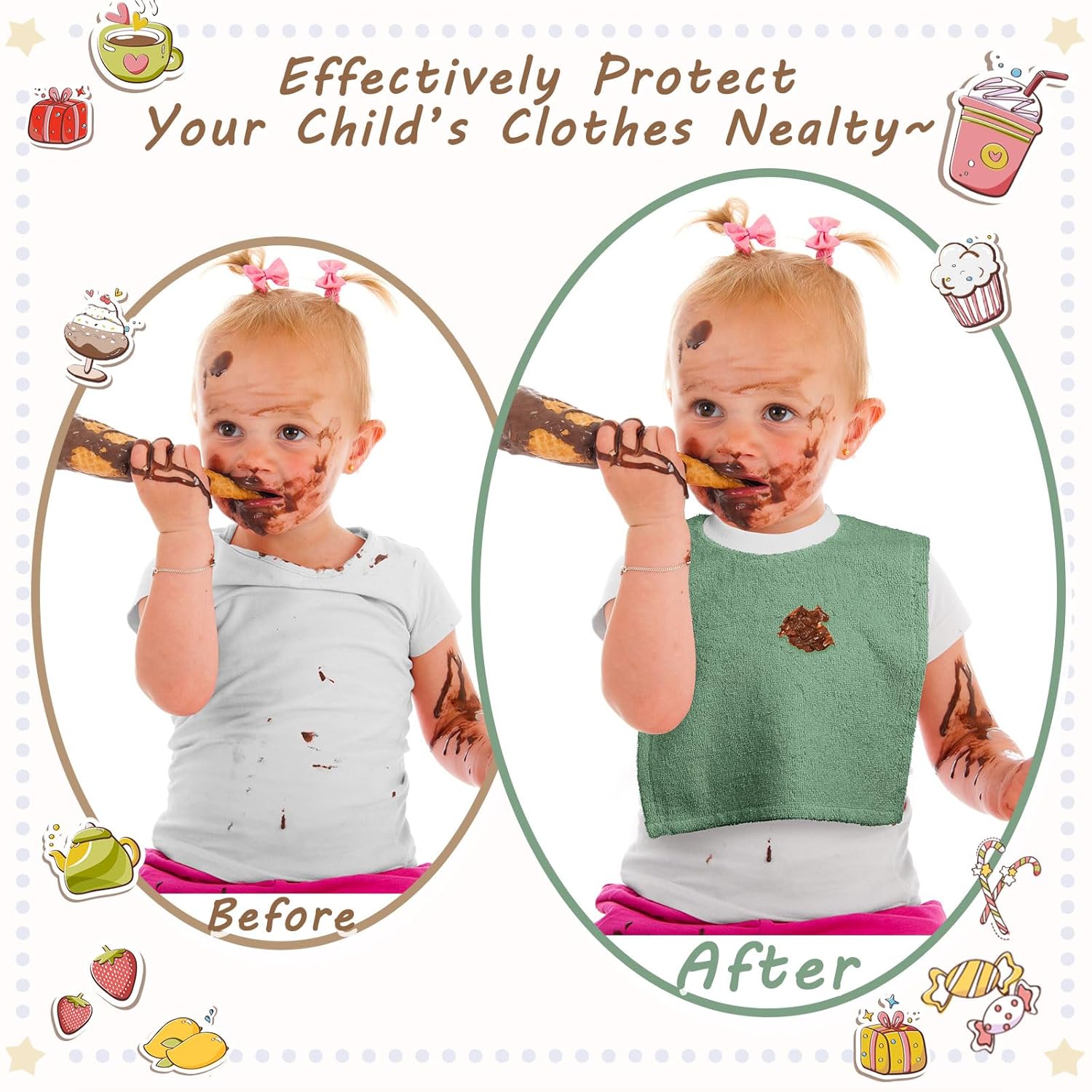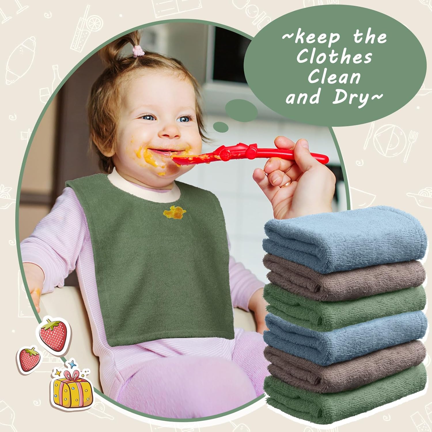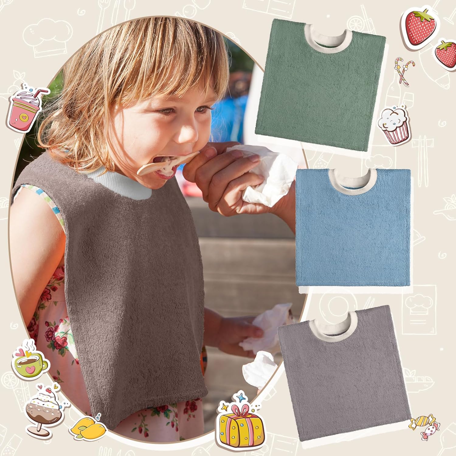 Straightforward to Change: the bibs for infants have a sleeve gap with a diameter of 5 inches/ 12.5 cm, which is sufficient so that you can assist your child change the bib flexibly; The encircling terry material may be very tender, which makes your child snug