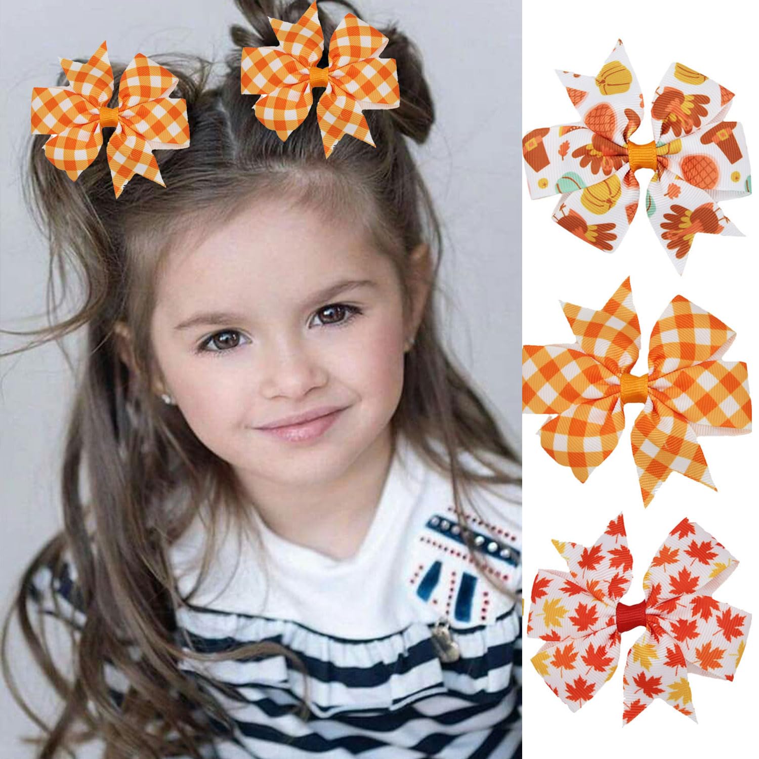๐๐๐ก๐๐ง๐ค๐ฌ๐ ๐ข๐ฏ๐ข๐ง๐ ๐๐๐ข๐ซ ๐๐จ๐ฐ๐ฌ ๐๐ฅ๐ข๐ฉ๐ฌ : 6Pcs Fall Hair clip for Thanksgiving.The scale of the diameter is roughly 3.15inches.Appropriate for kids and adults