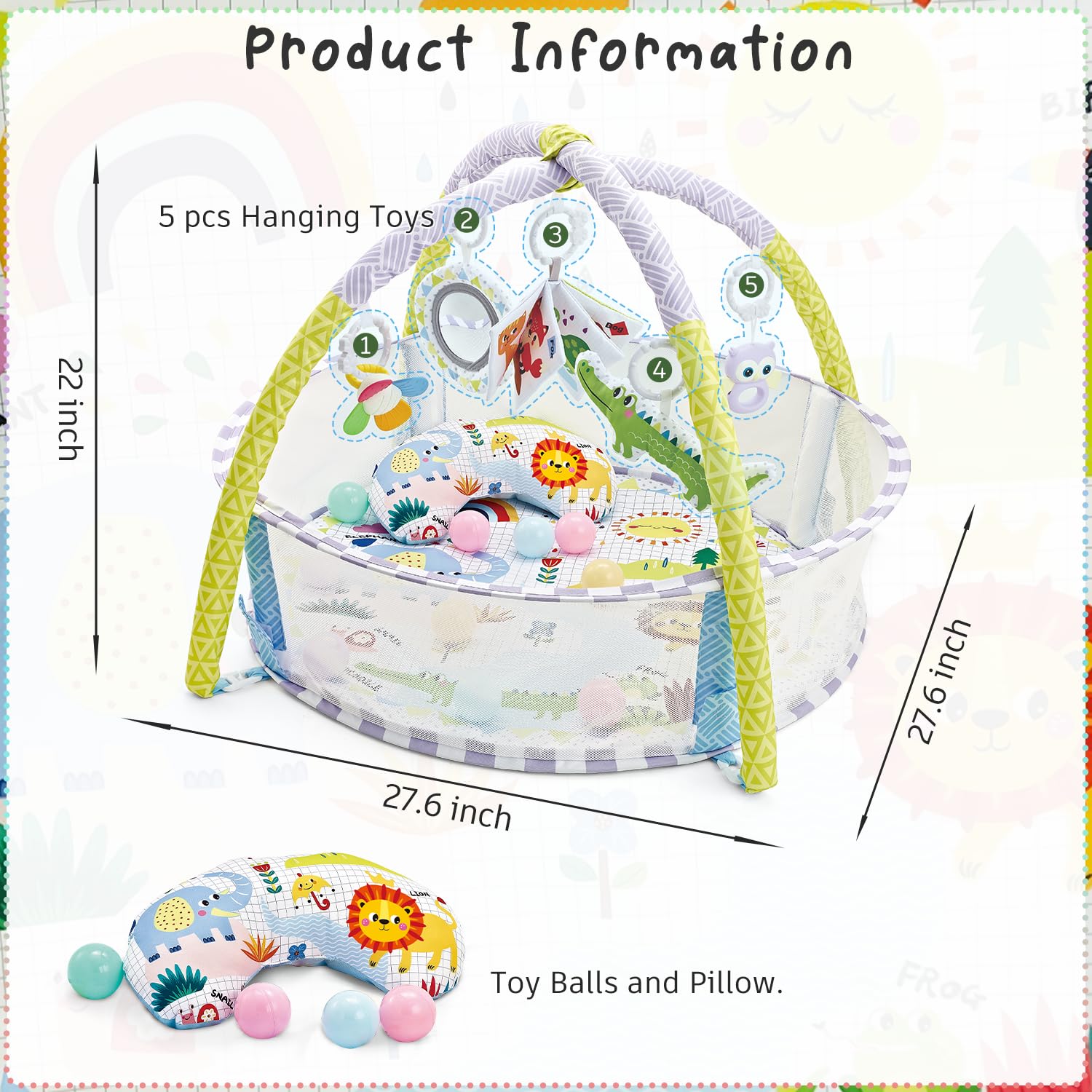 【7-in-1 Child Play Mat】: Our 6 month outdated child necessities child play mat with a safari theme comes with some fascinating enlightenment toys that may simply arouse your child’s curiosity in all instructions when mendacity or sitting. child playpen with mat accommodates 5 detachable hanging tummy time toys, 1 tummy time pillow, 10pcs toy balls, and a 27.6 x 22-inch giant & tender playmat. play mats for flooring absolutely meet the infant’s development wants