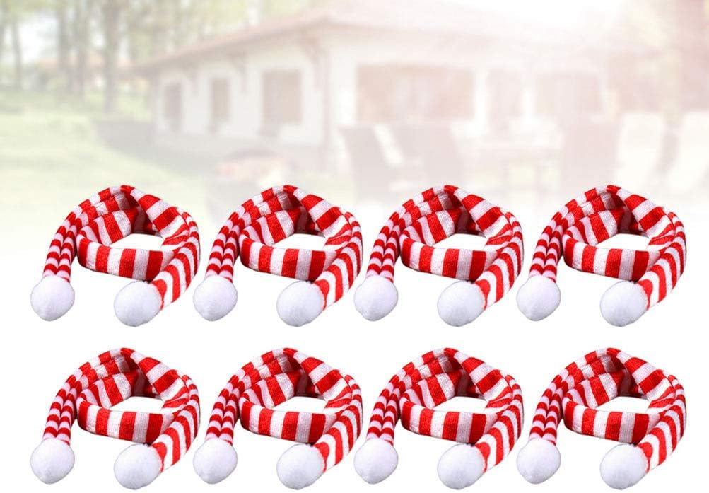 8Pcs Mini Christmas Wine Bottle Scarf Red and White Stripes Holiday Decoration Accessory for Xmas Party, Banquet, and Gift Giving