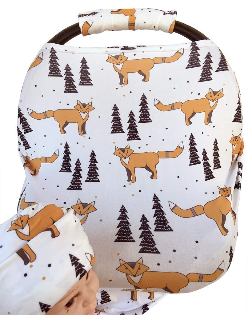White floor woods forest and fox print with ash gray seat cowl, good for unisex infants. Machine cleanable (all elements besides cover with plastic rod are) , simple care. Matches into your diaper bag completely. Greatest for breastfeeding moms, toddler automotive seat, child registry and child bathe reward.