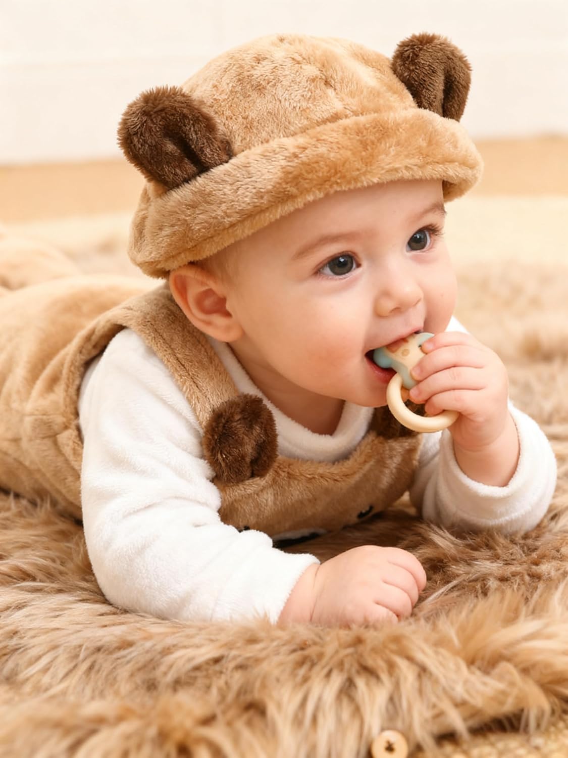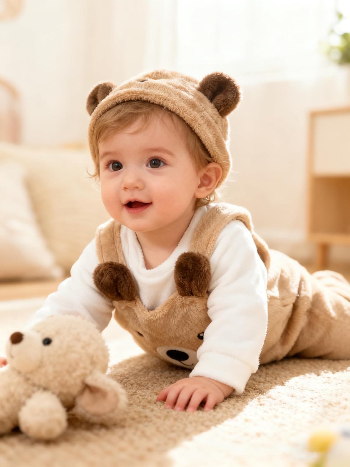 3D bear ears + plush softness = on the spot ‘aww’s. Paired with tiny sneakers—an ideal picture – prepared look.